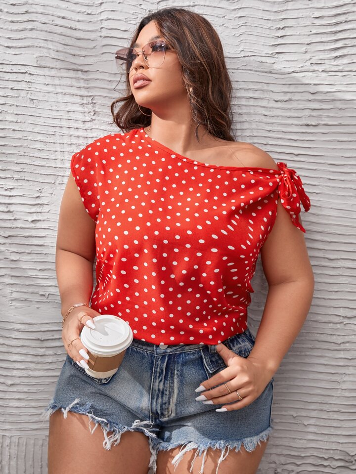 Camicetta a pois nodo laterale scollatura asimmetrica