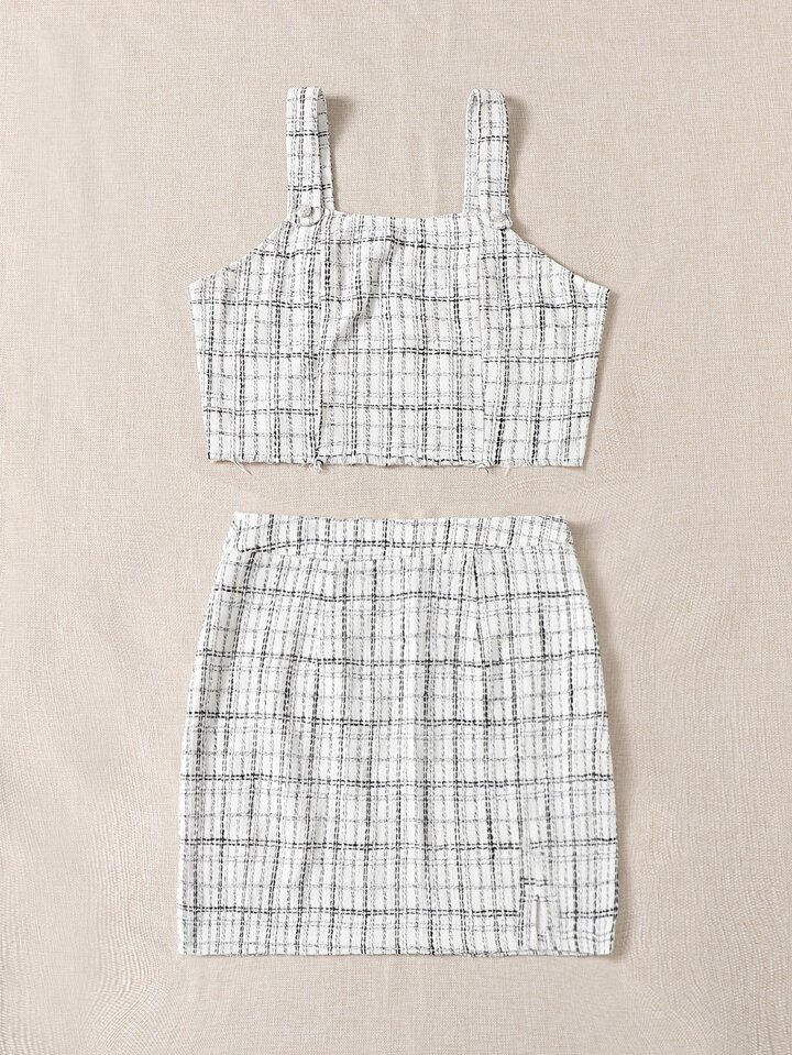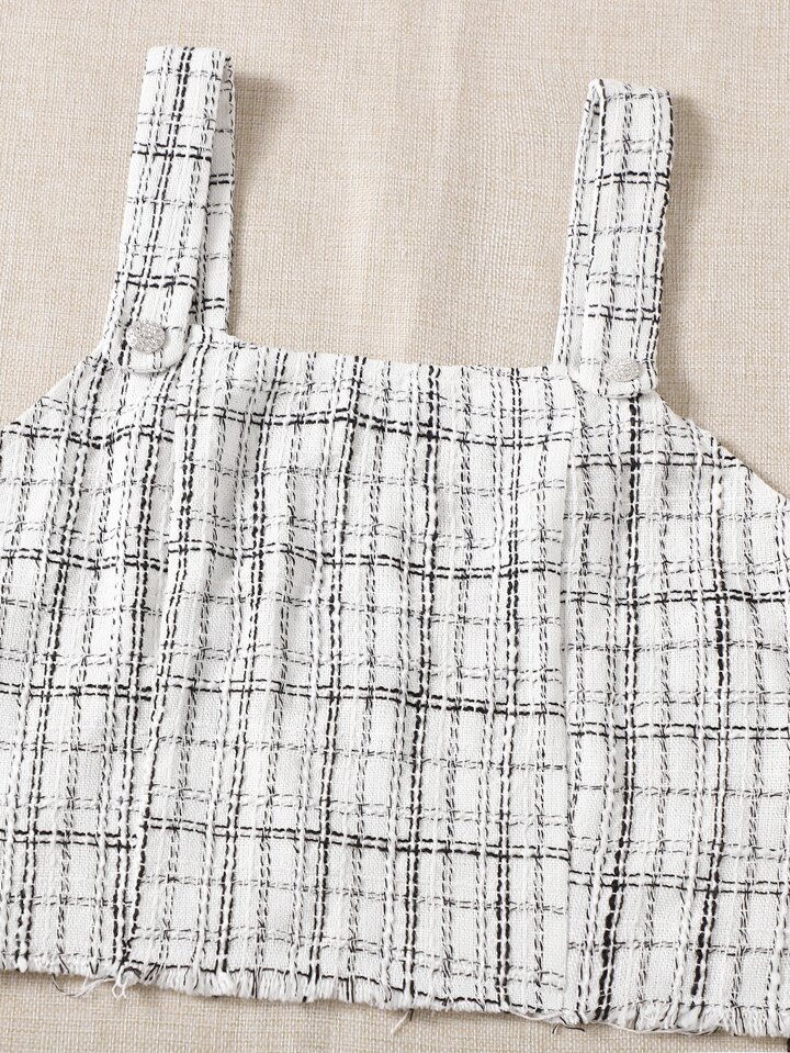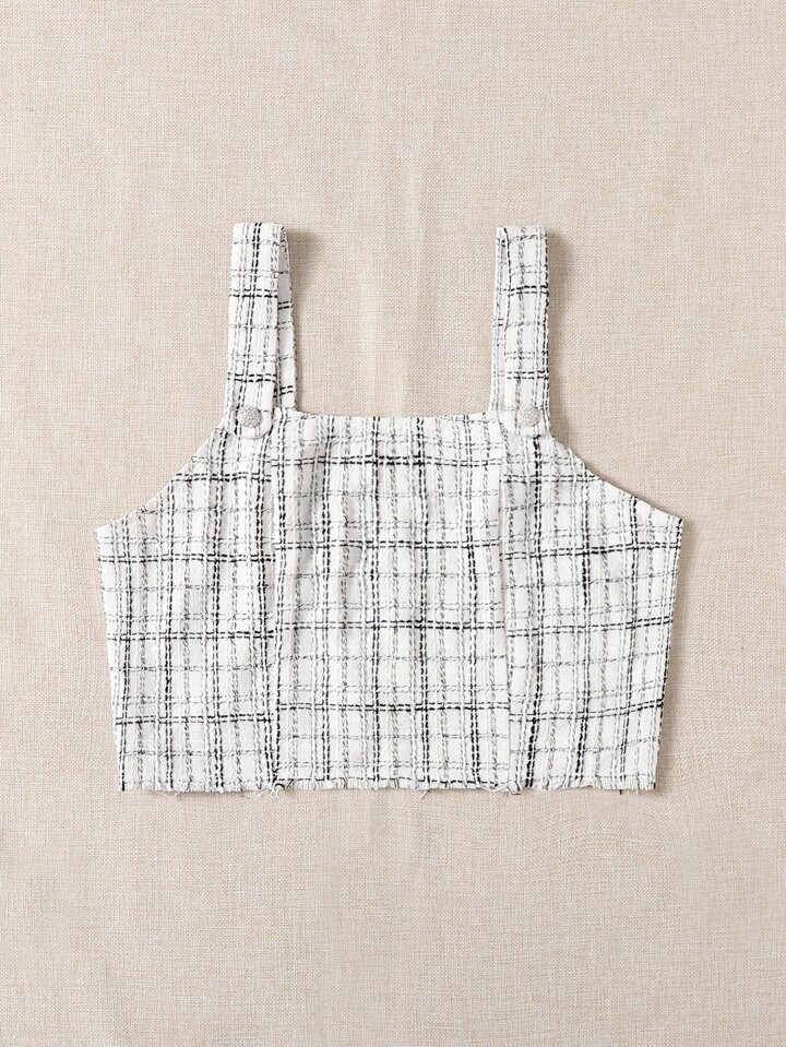 Top con bretelle sottile con taglio grezzo a quadri Tweed