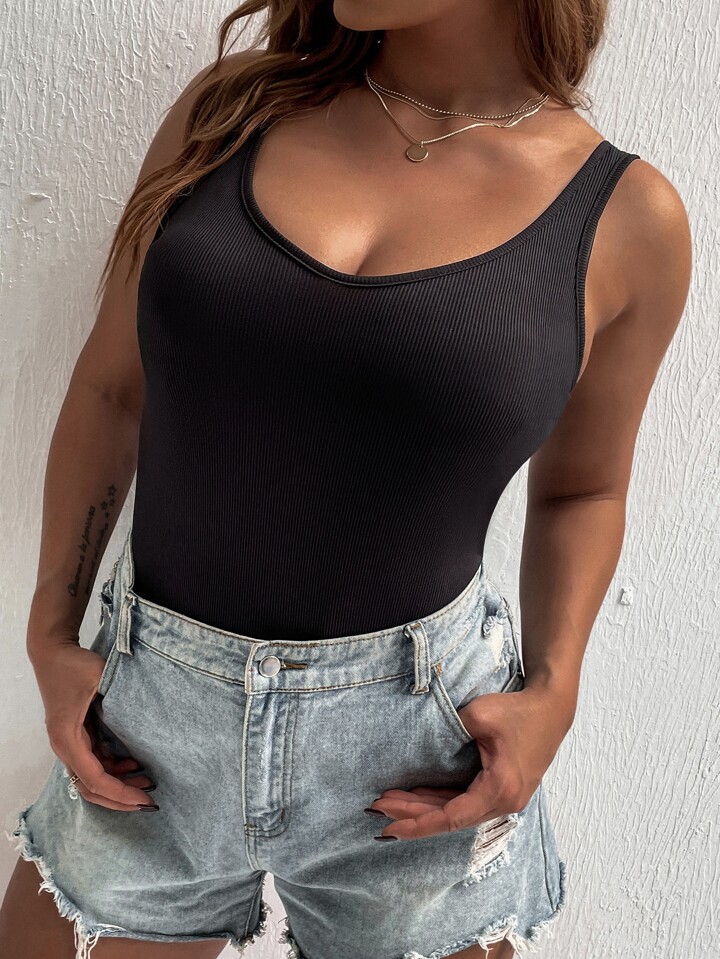 taglie forti Body con bretelle sottile maglia a coste