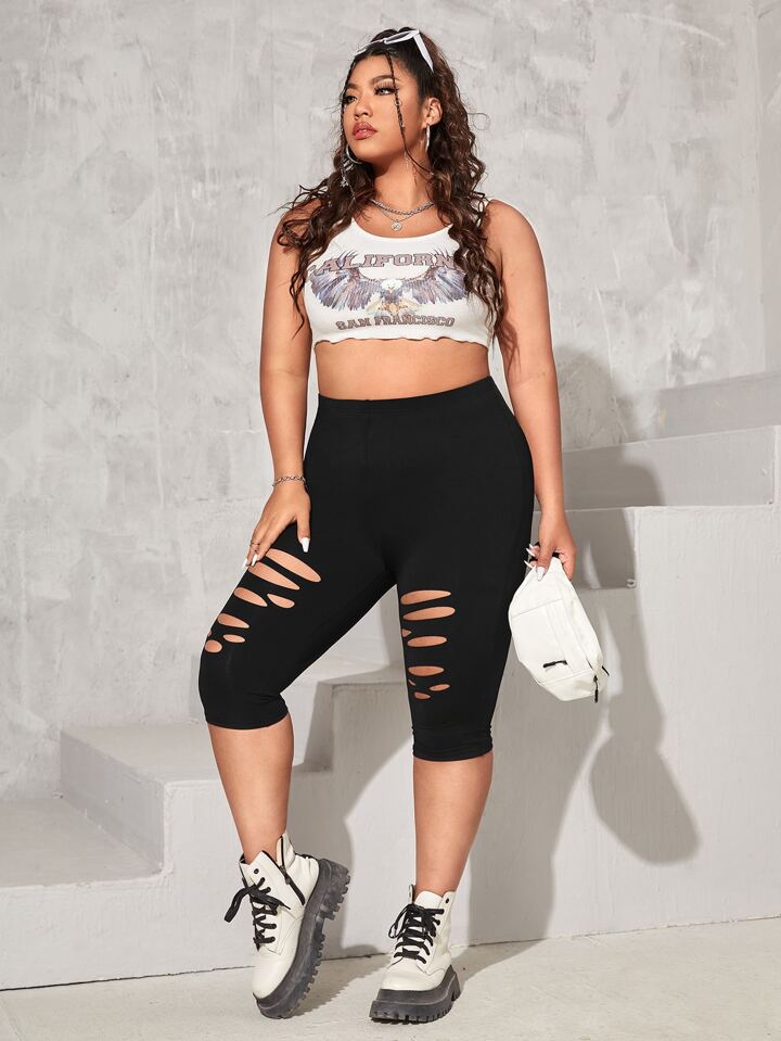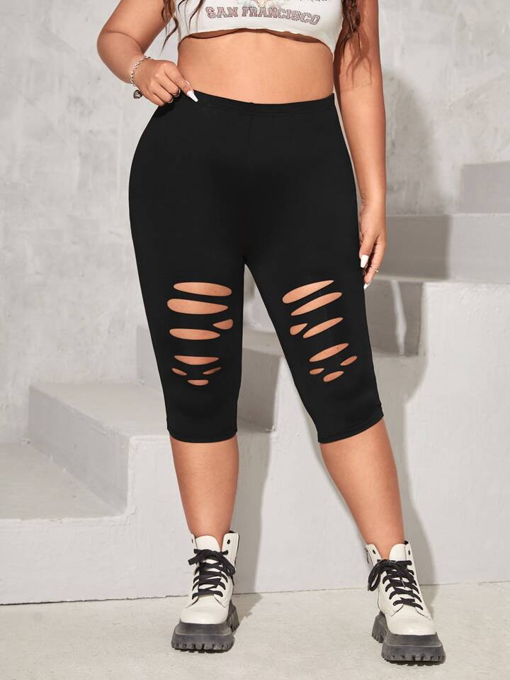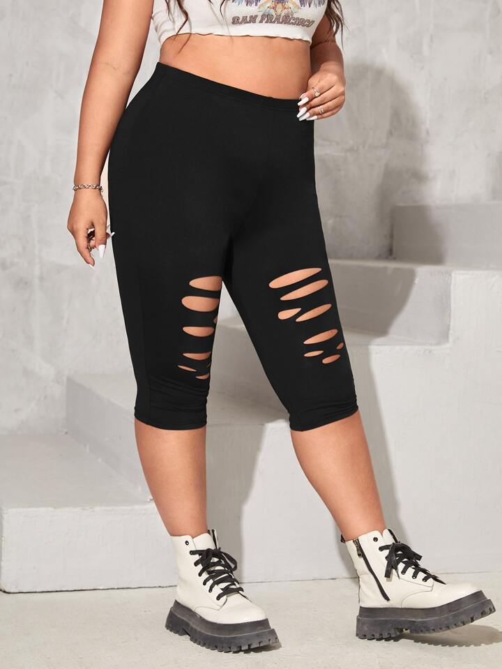 taglie forti Leggings con strappati vita alta