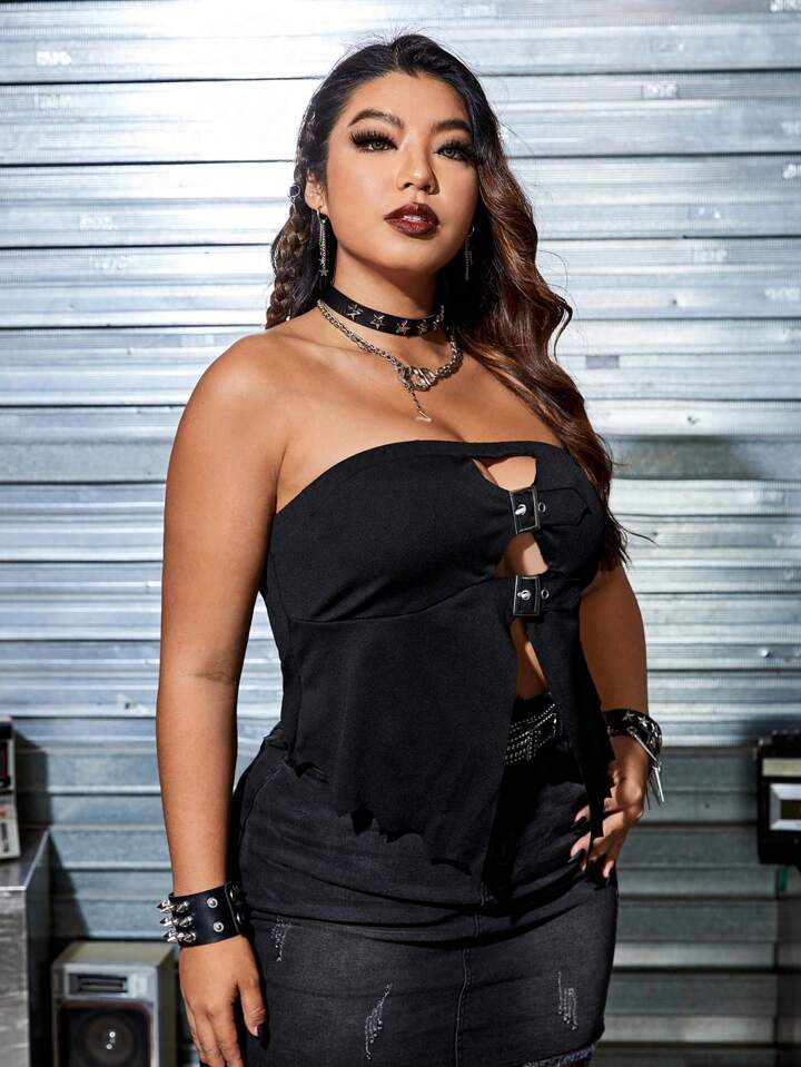 Taglie Forti Top tubo roccia scavato con fibbia davanti