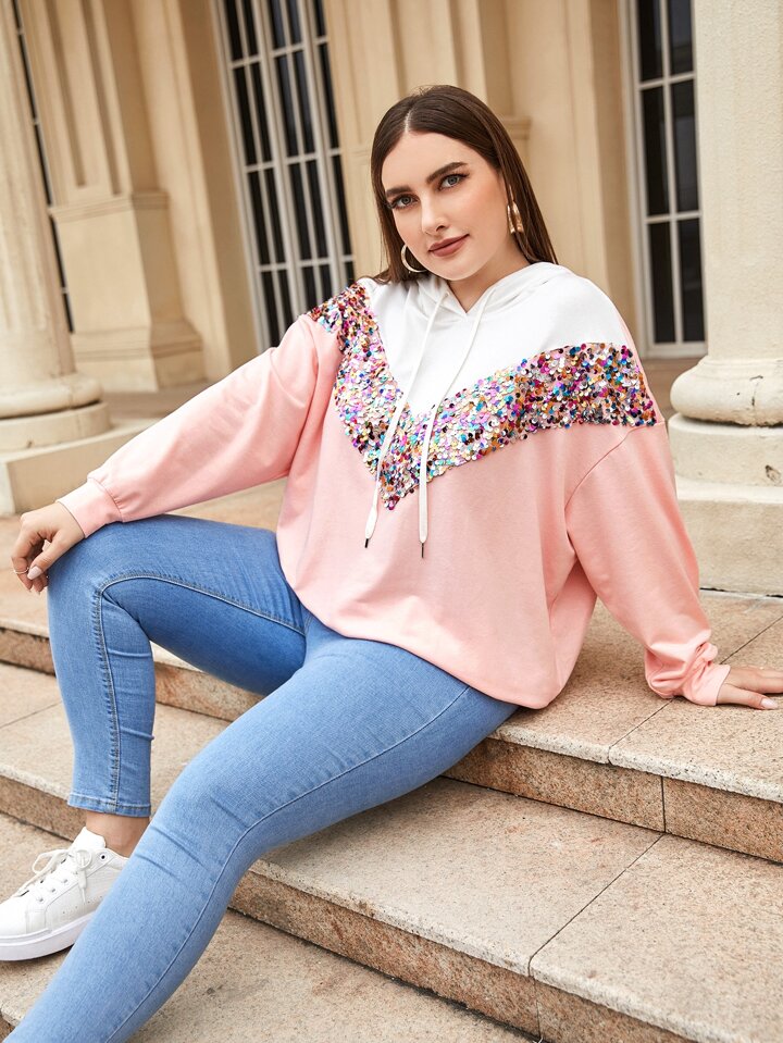 Felpa Taglia forte Cordone Blocchi di colore Casual