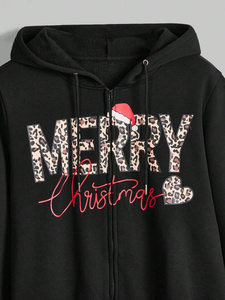 Felpa taglie forti a motivo natalizio leopardato con stampa a contrasto, fiocco e pizzo decorativo