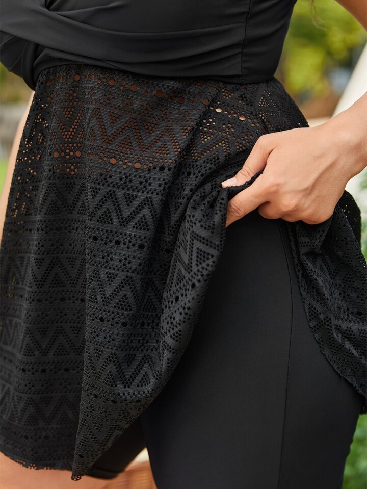 Abito da bagno estivo con apertura incrociata e traforato in taglia curvy
