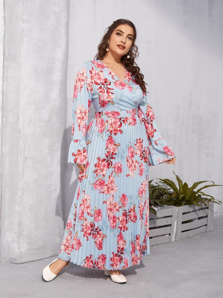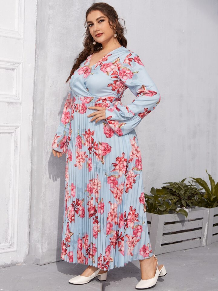 Abito a stampa floreale con orlo plissettato, taglie comode