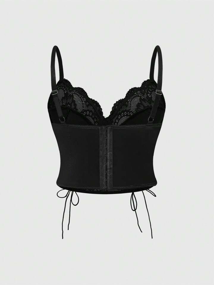 Canotta goth stile oversize in PU e pizzo con fasce