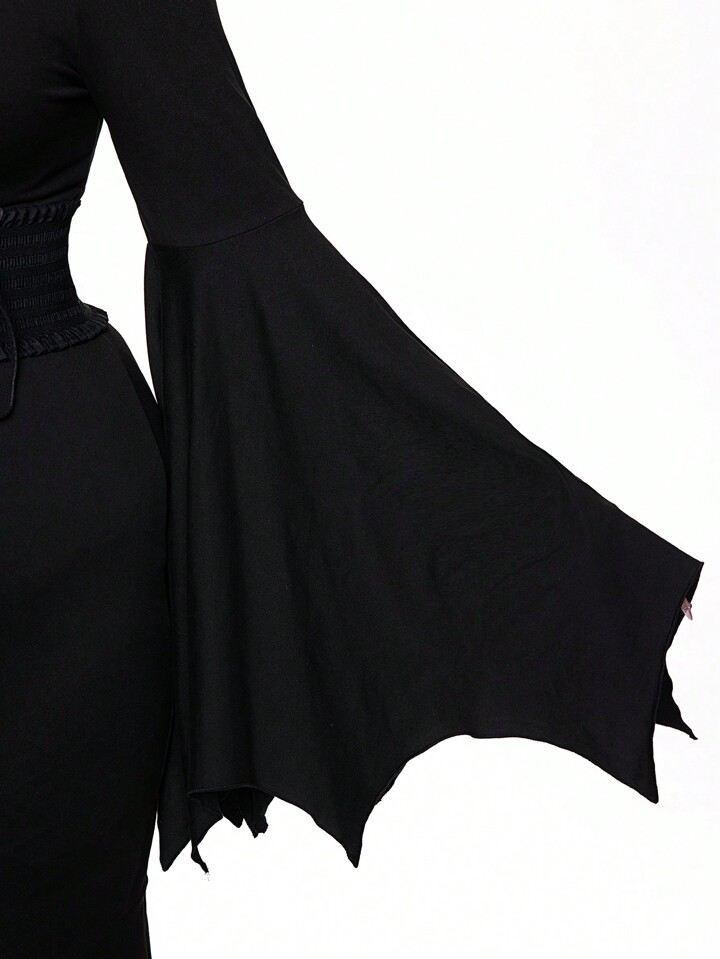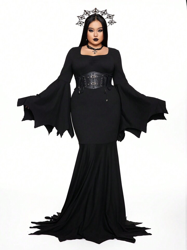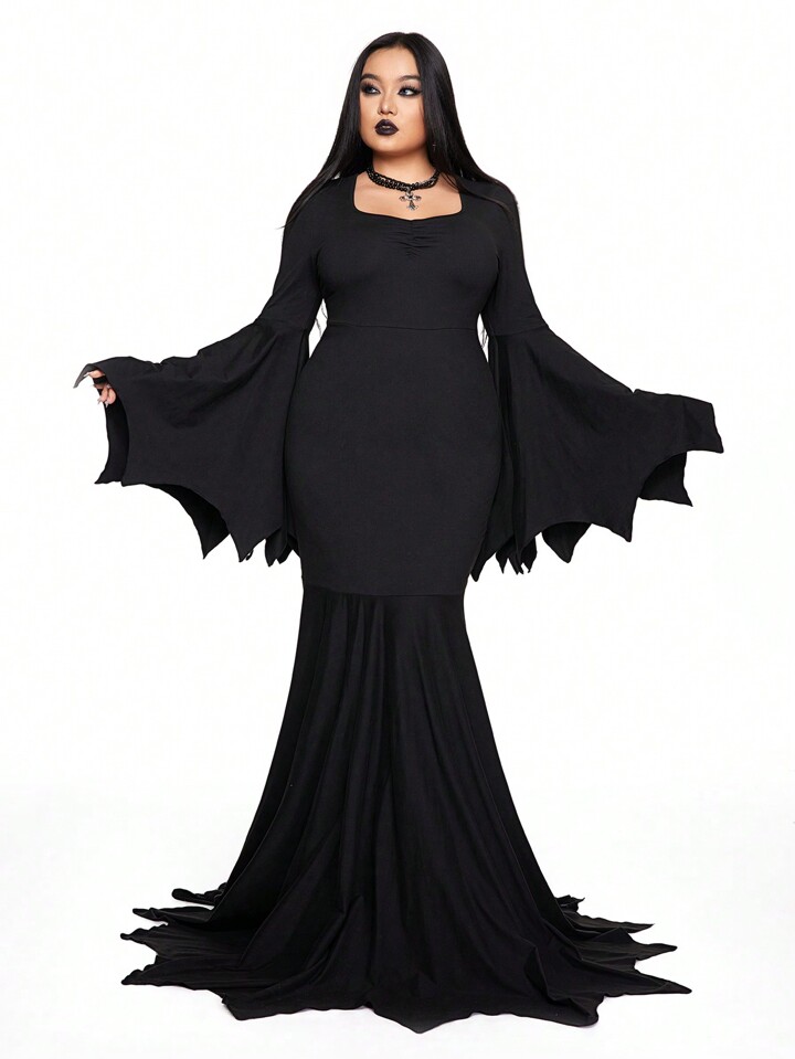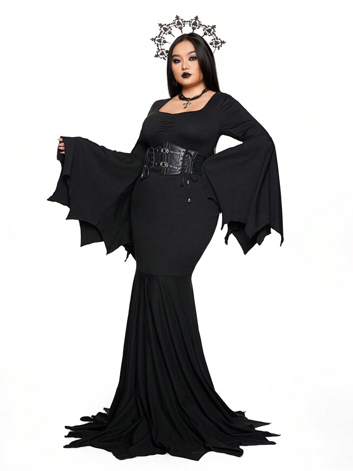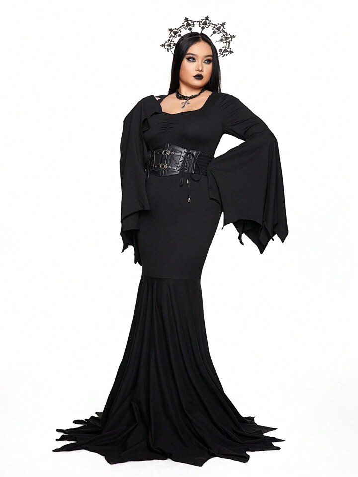 Goth Vestito nero solido e senza maniche da donna in taglia grande, adatto per feste gotiche, misteriose e orrore di Ognissanti, con tessuto elasticizzato