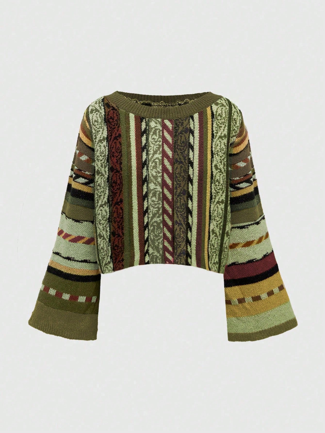 Maglione oversize hippie boho a righe verticali, Maglione oversize casual boho a maniche a zampa con motivo a righe, Maglione oversize da donna casual per tutti i giorni