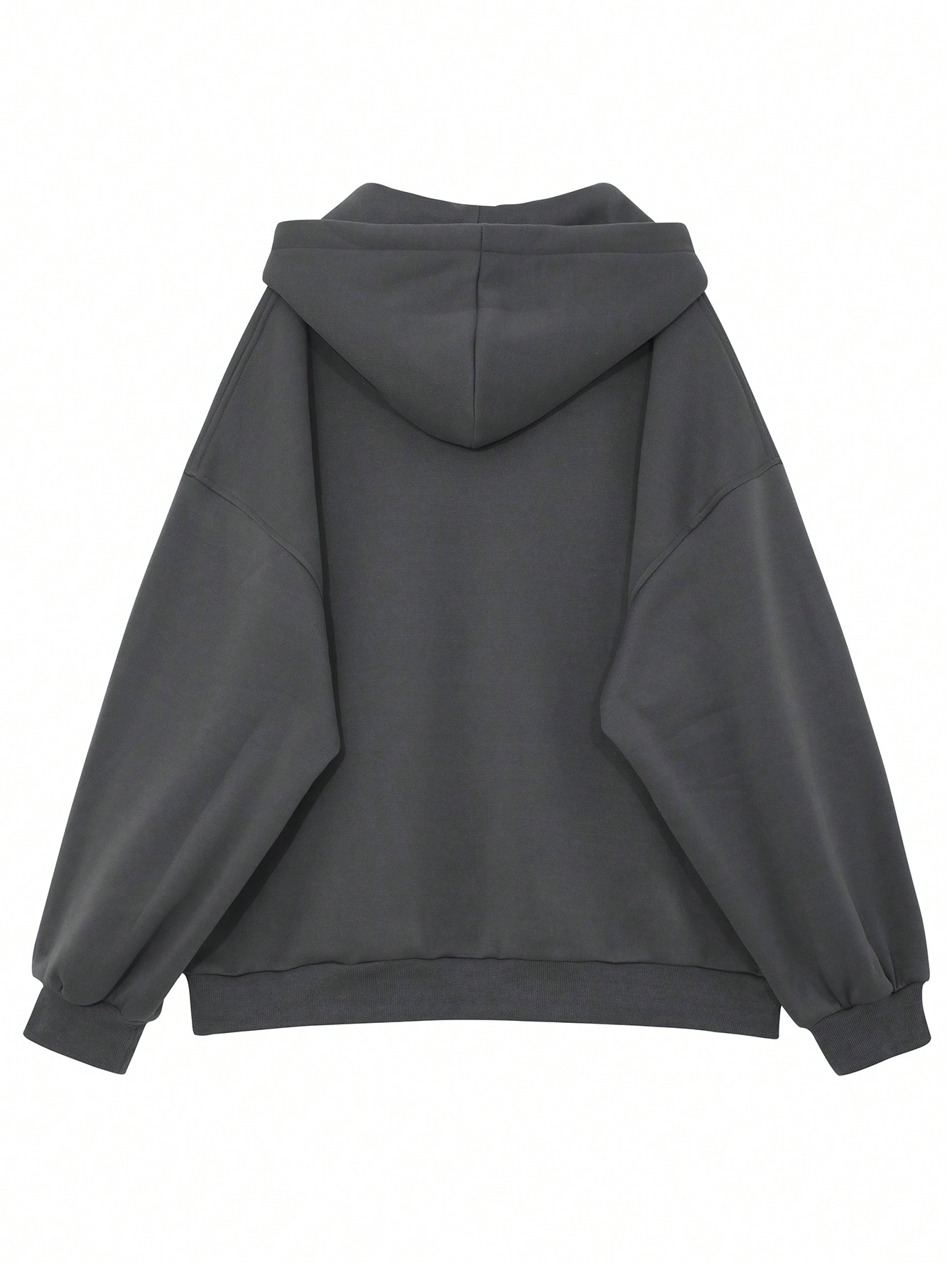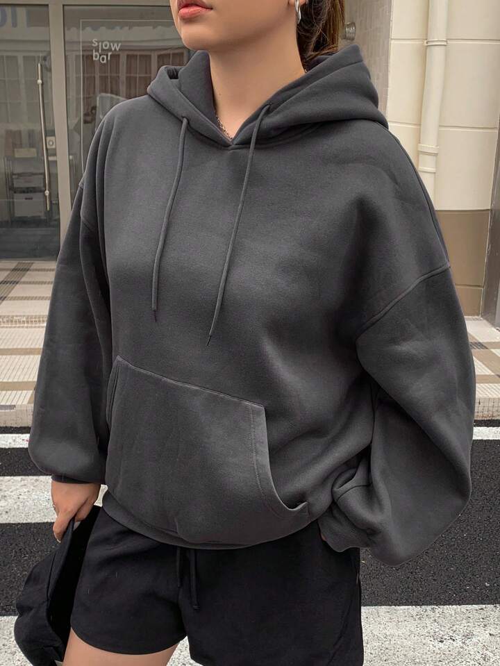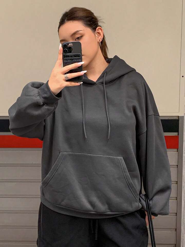 Felpa oversize con tasche a canguro in colori uniti, adatta per l'inverno, taglie comode