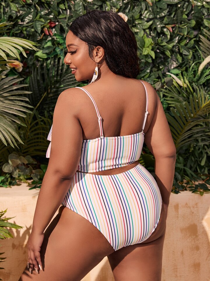 Set bikini a strati a righe taglie comode per la spiaggia estiva