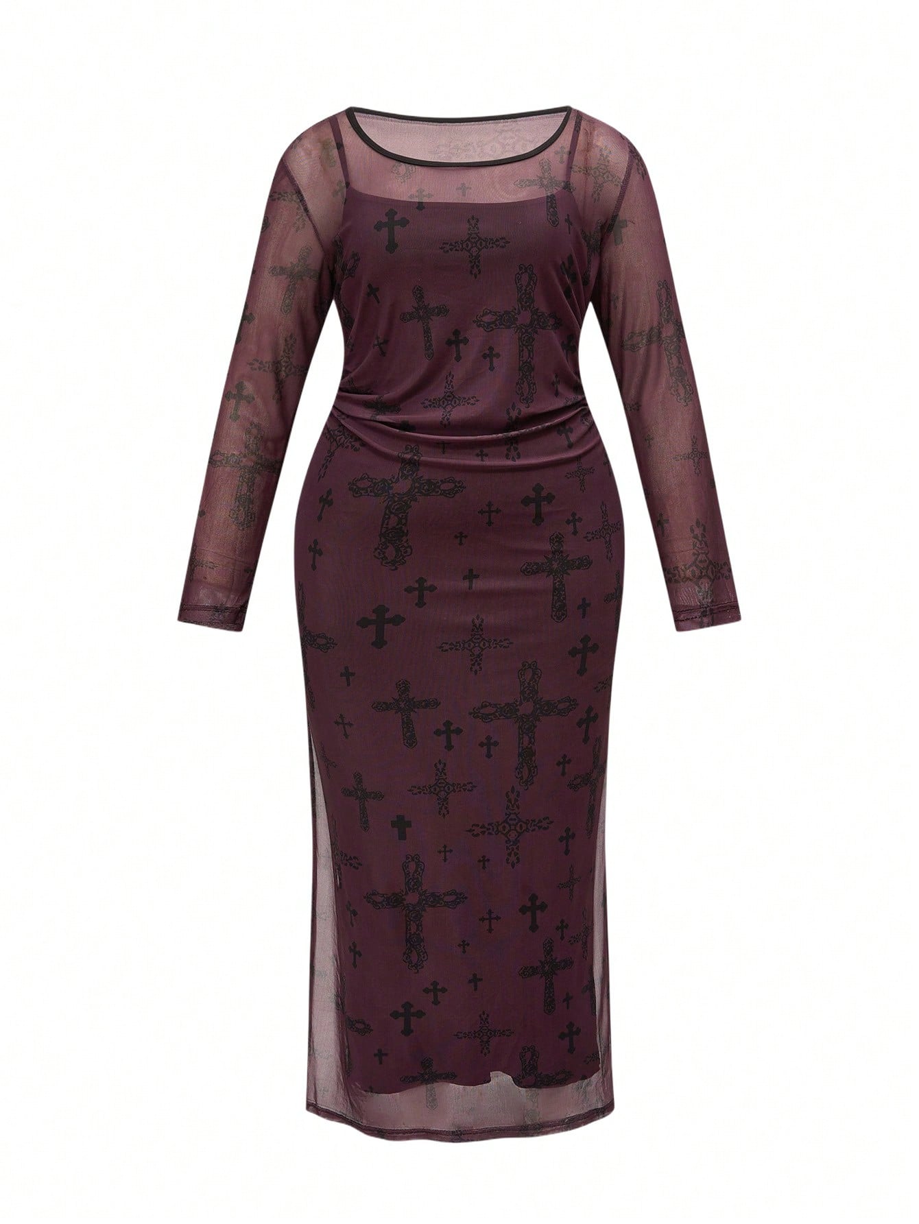 Abito lungo con maniche lunghe in rete e dettagli vintage romantici e dark gothic, vita stretta, adatto per Ognissanti, taglie comode