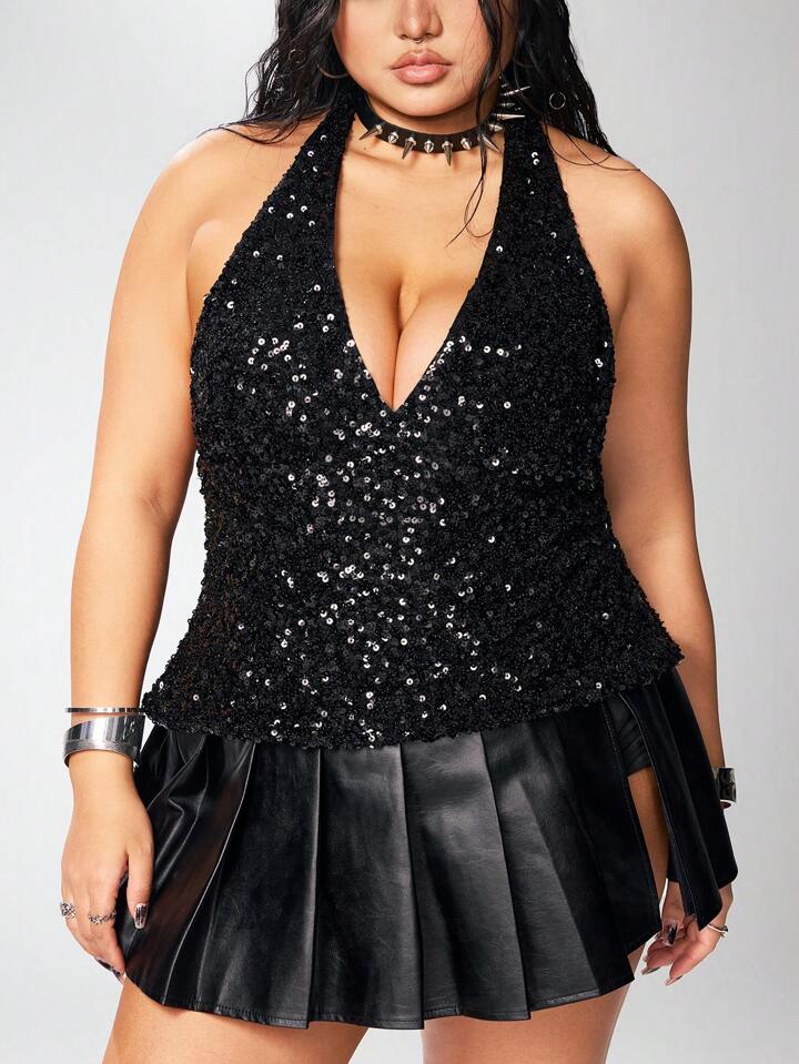 Canotta con spalline sottili e paillettes, in stile Y2K e per festival di musica rave, per taglie comode