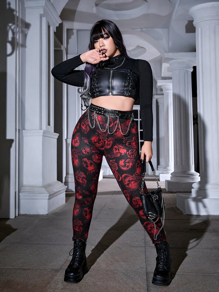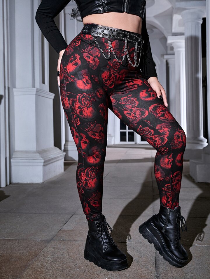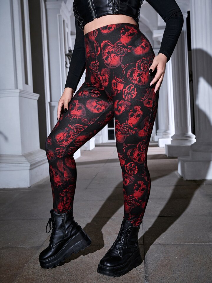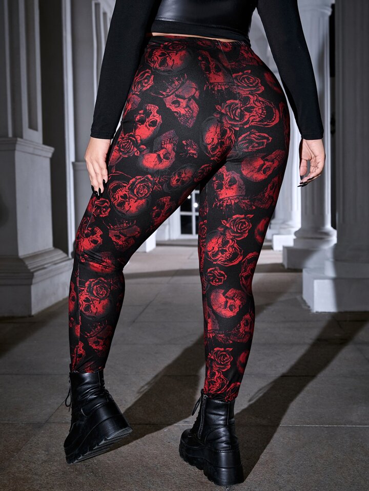 Leggings a vita alta con stampa teschio taglie comode, per la scuola