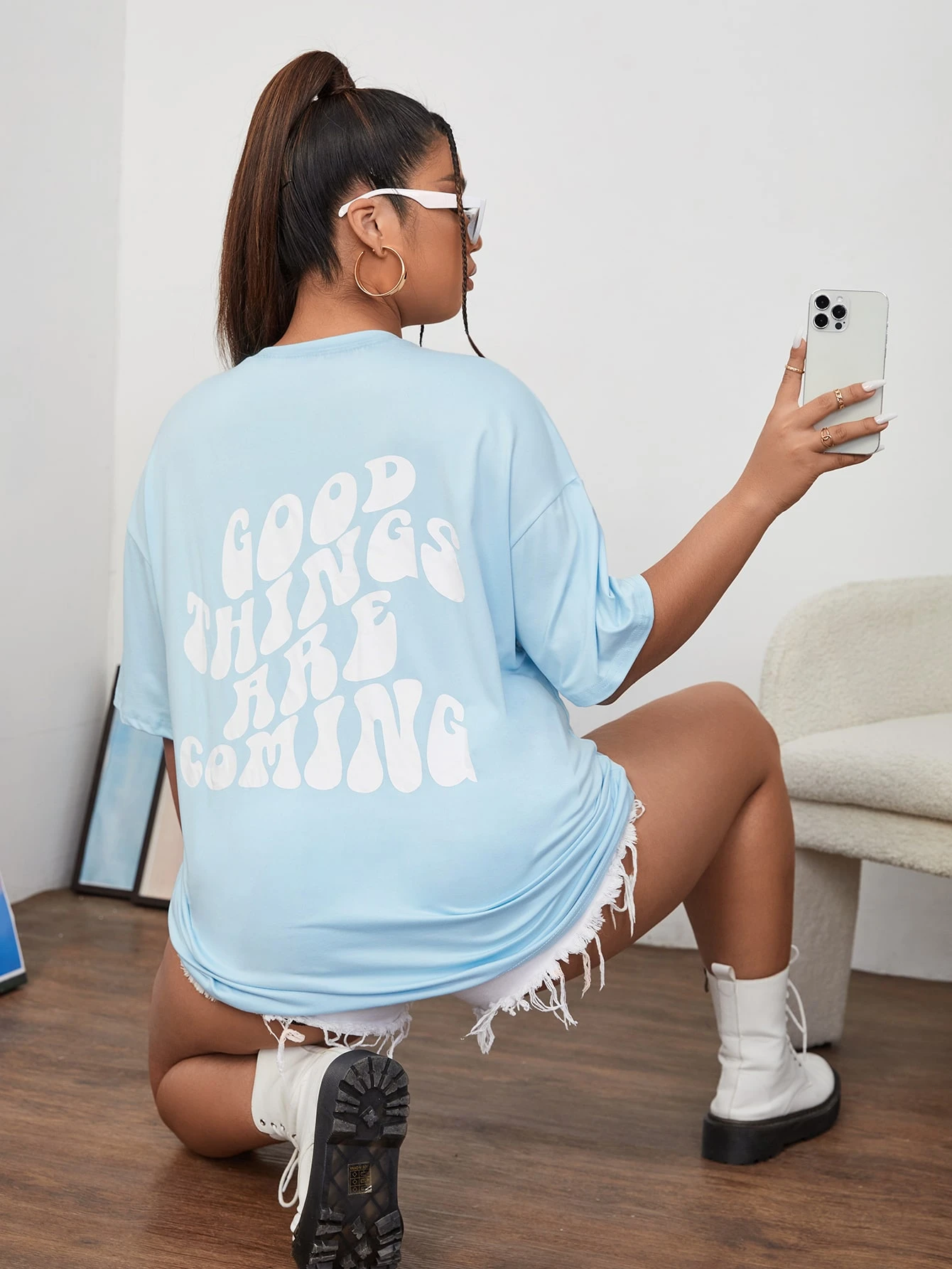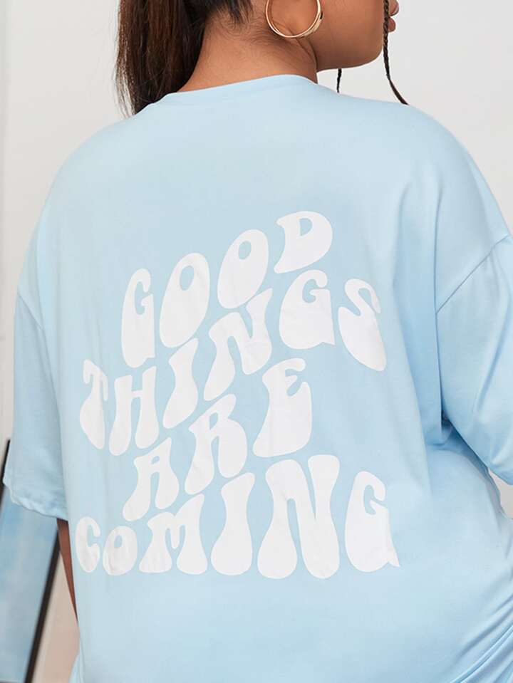 Maglietta con spalla goccia con grafica slogan