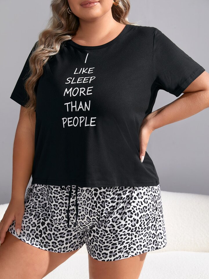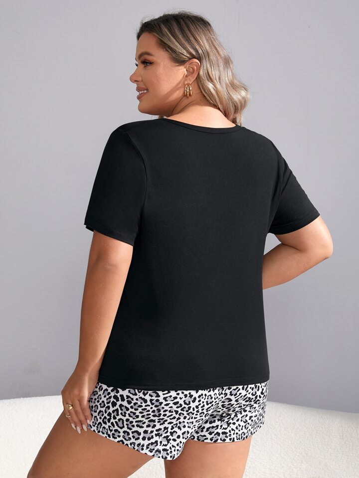 Taglie Forti con grafica slogan Maglietta & con stampa leopardo Shorts Set pigiama