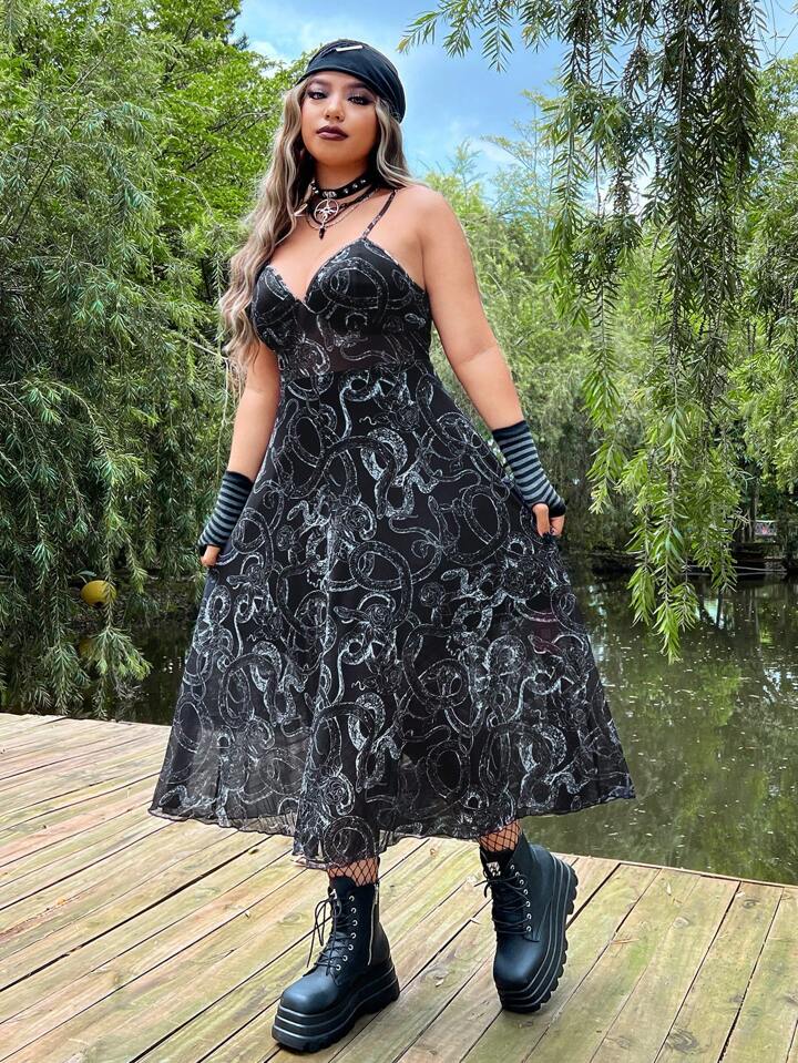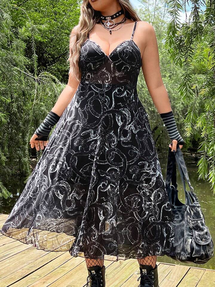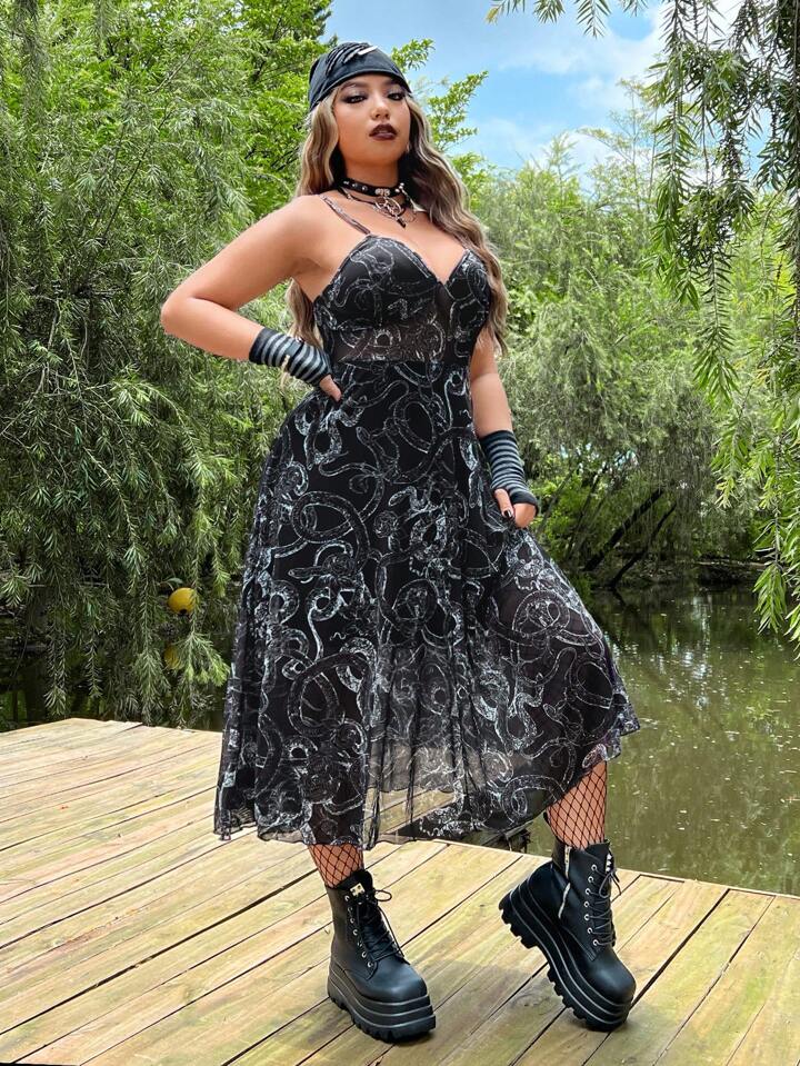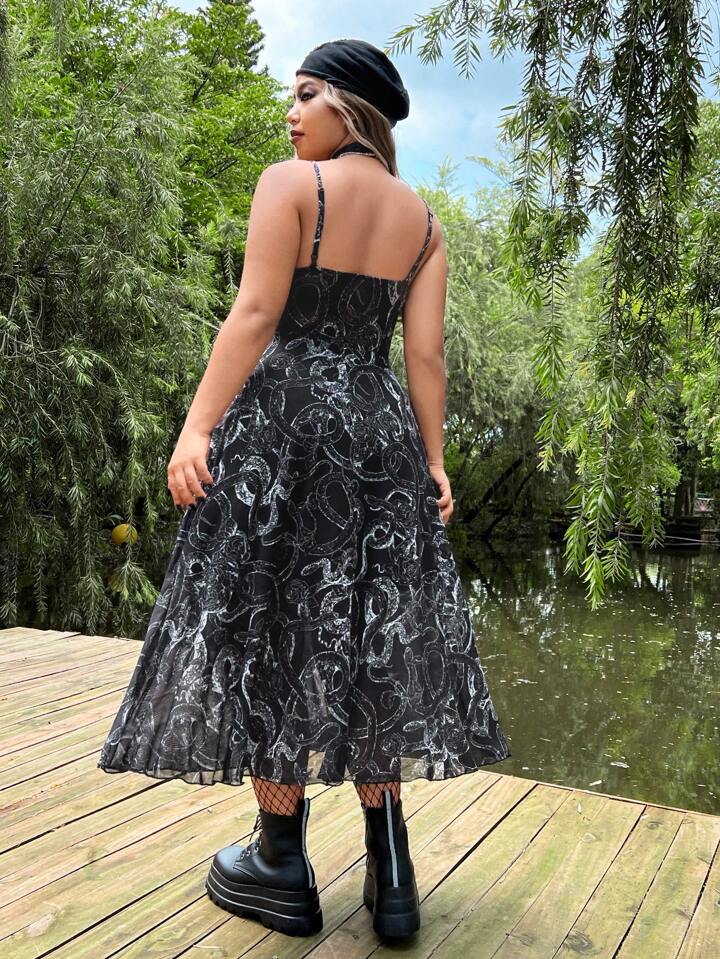 Taglie Forti Abito con bretelle sottile con stampa effetto serpente mesh senza guanti