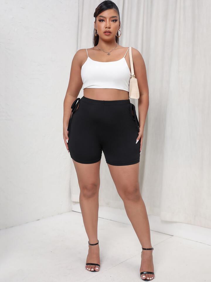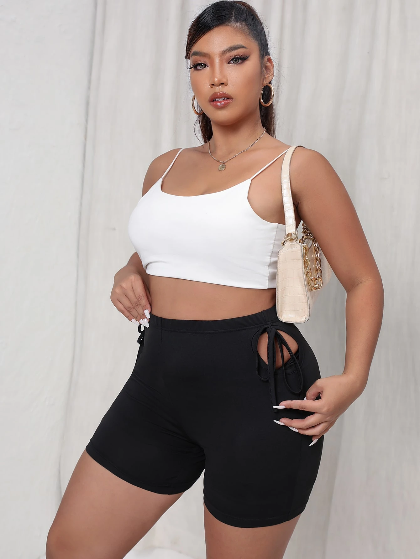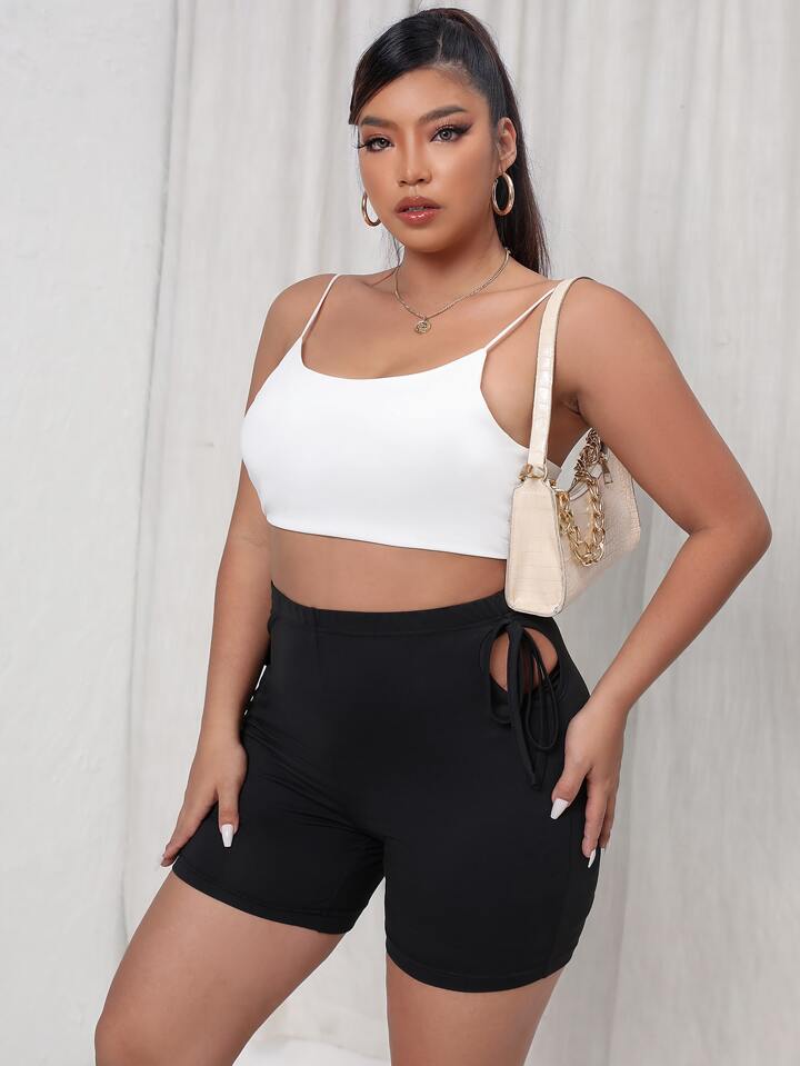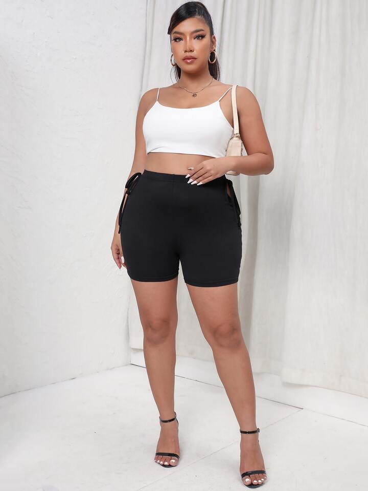 taglie forti Pantaloncini da ciclismo monocolore con lacci laterali scavato