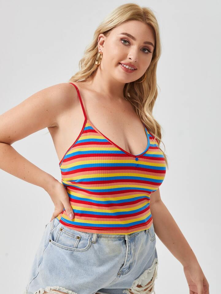 Top con bretelle sottili a costine di blocchi di colore a righe