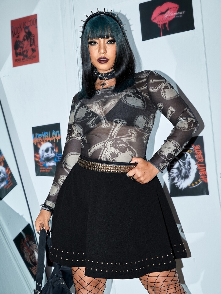Taglie Forti Gonna svasata con dettaglio borchiato