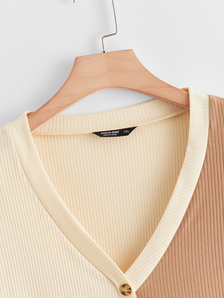 Magliette taglie forti Bottone frontale Blocchi di colore Casual