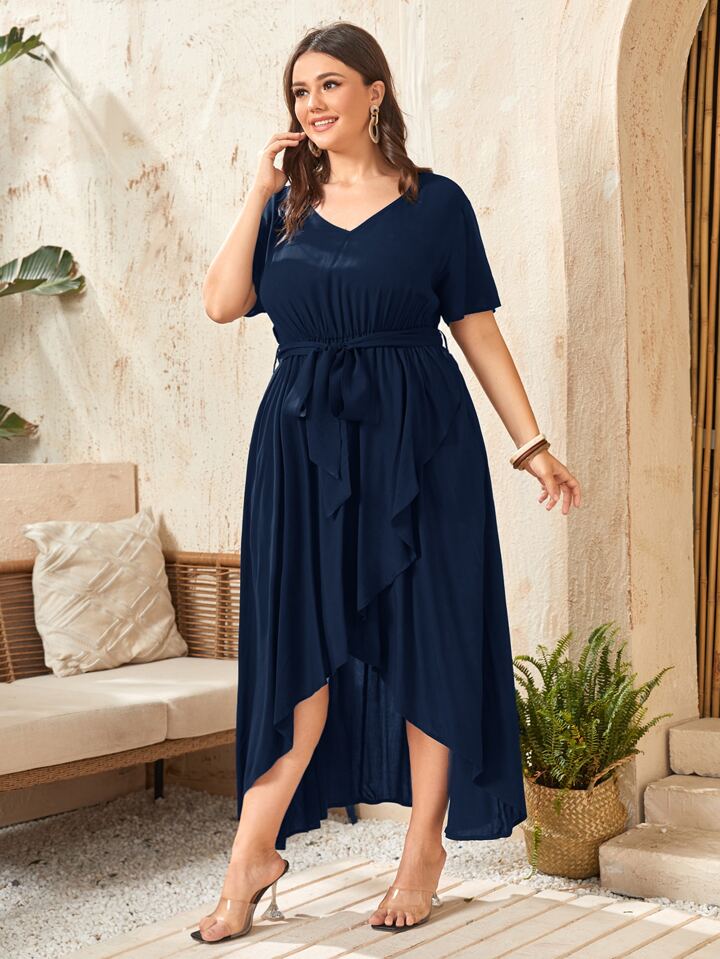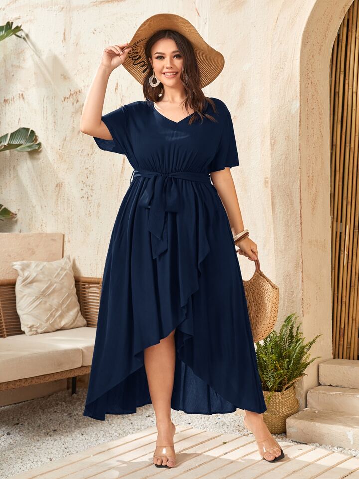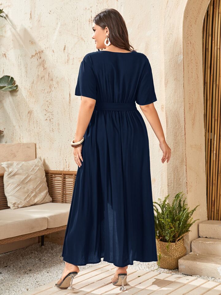 Abito incrociato con scollo a V con cinture