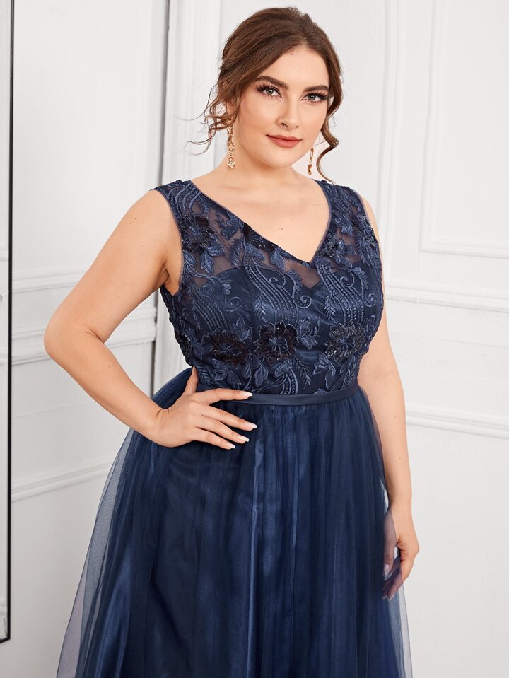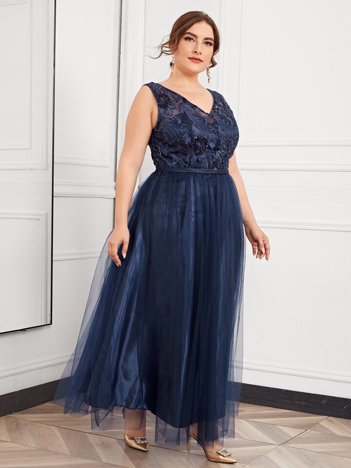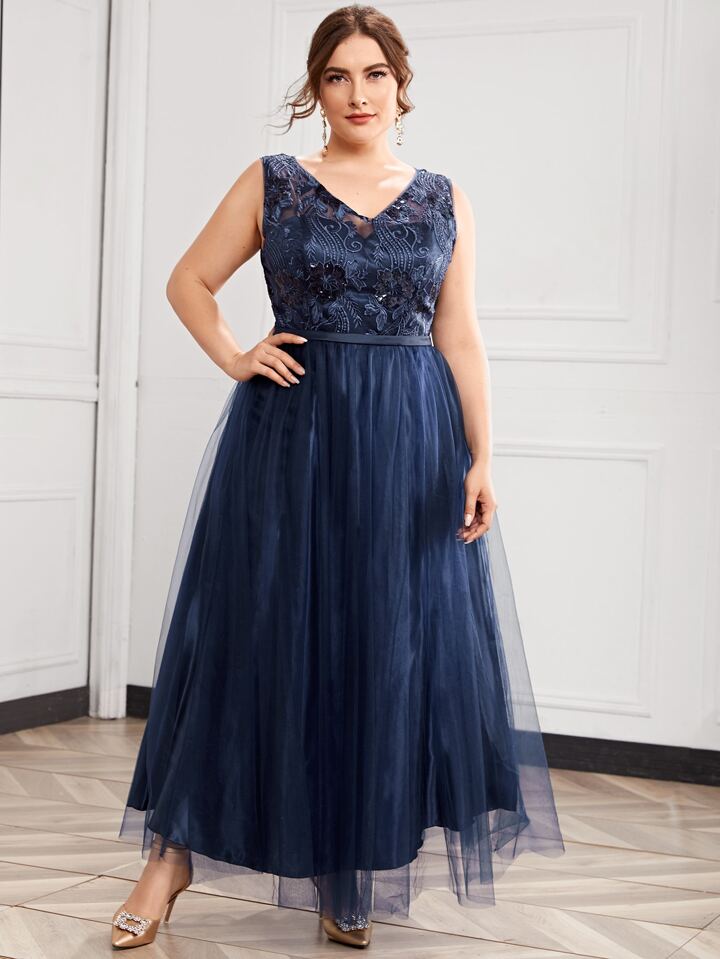 Abiti taglie forti Ricamo Colore unico Glamour