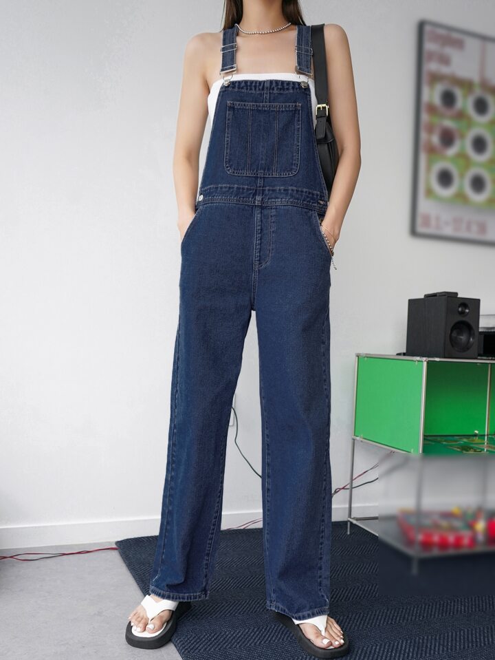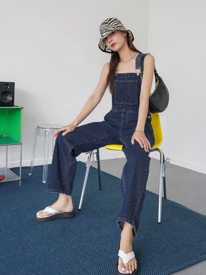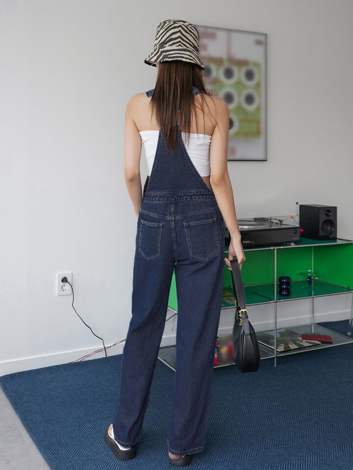 Salopette in denim larghi con tasca applicata