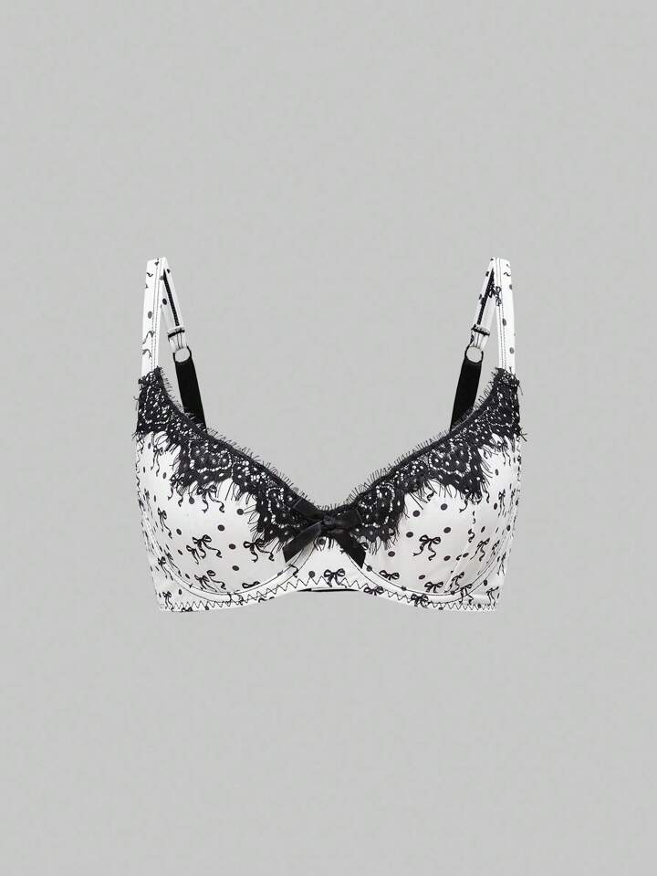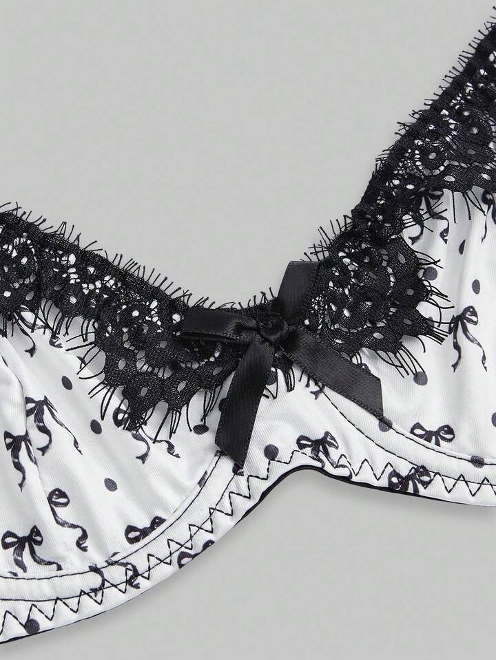Reggiseno con ferretto, decorato con fiocchi e pois, in pizzo