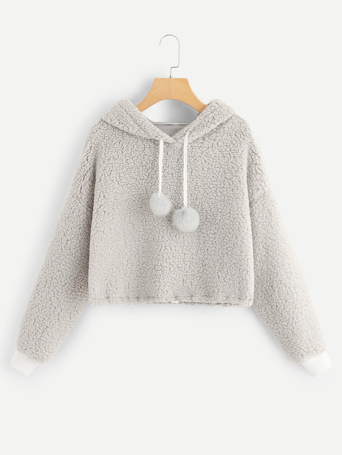 Felpa teddy con cappuccio e coulisse con dettaglio di pompon