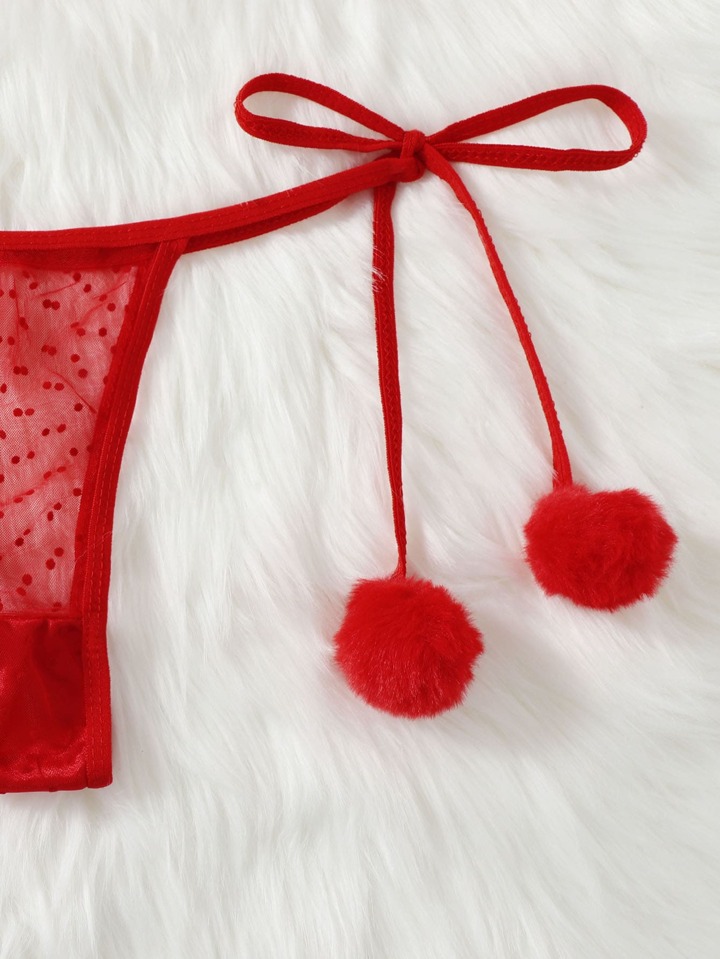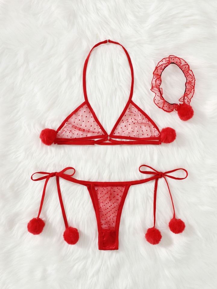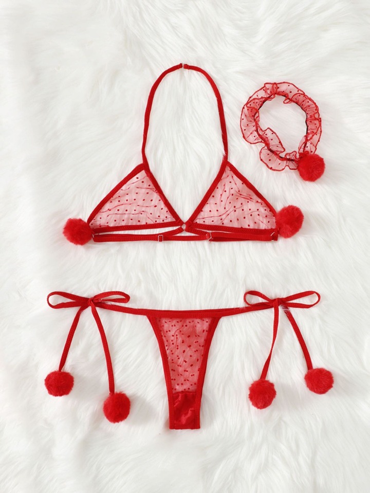 Set lingerie decorato pompon tulle a pois con choker