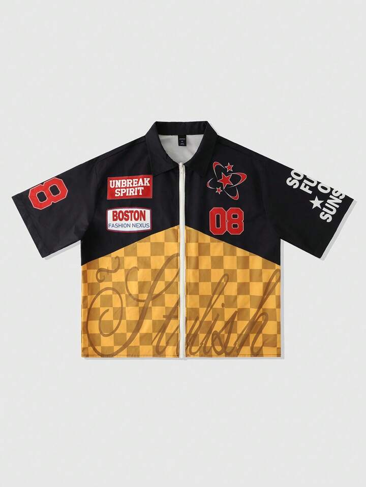 Prep Camicia casual con maniche corte da uomo a vestibilità comoda con motivo a scacchiera