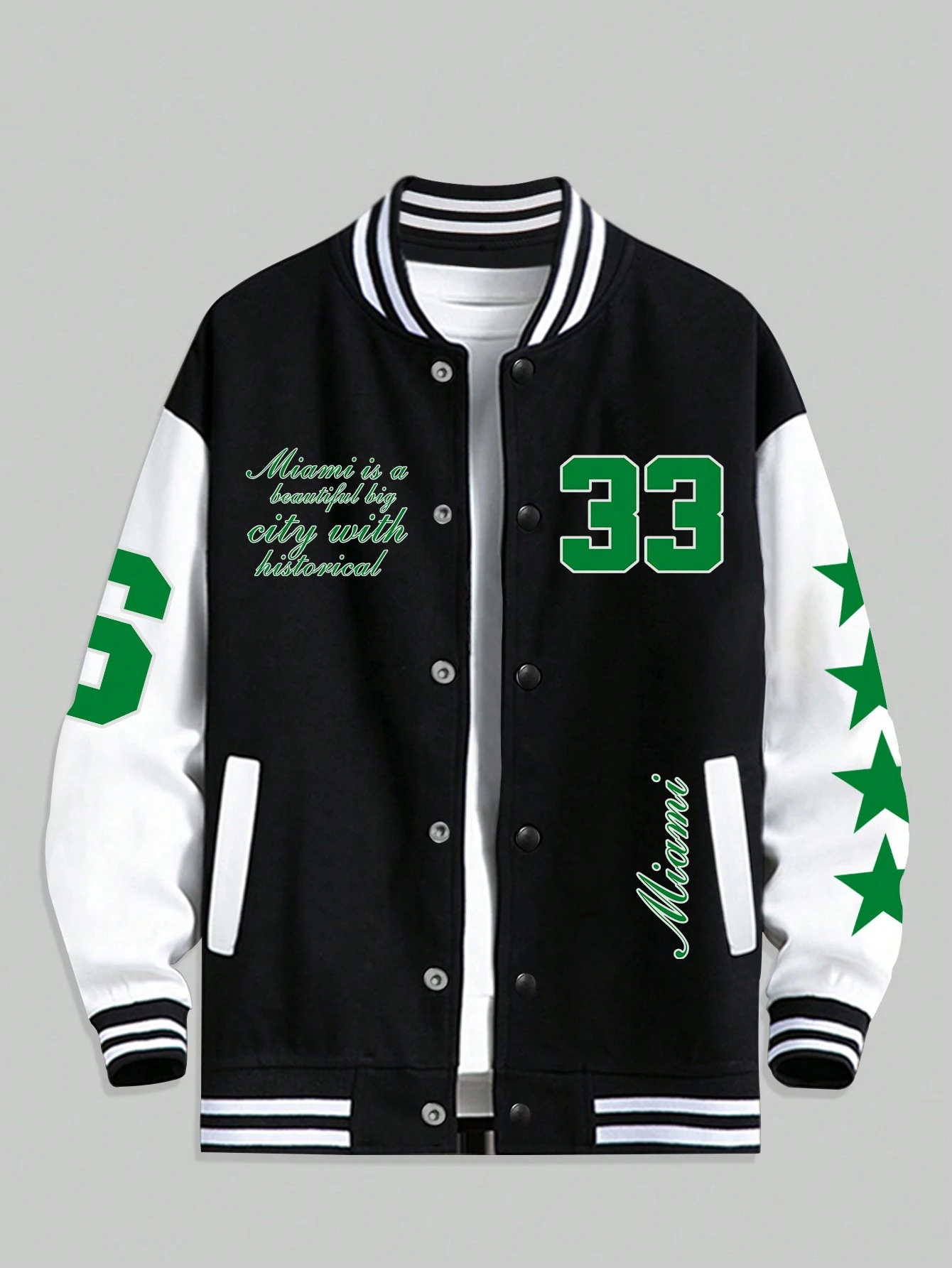 Prep Ragazzi 1 pezzo Giacca varsity con grafica stella e slogan finitura a righe spalle cadenti