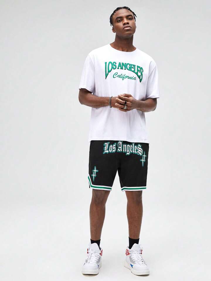 Prep Ragazzi Shorts con grafica lettera nastro a contrasto con coulisse a vita