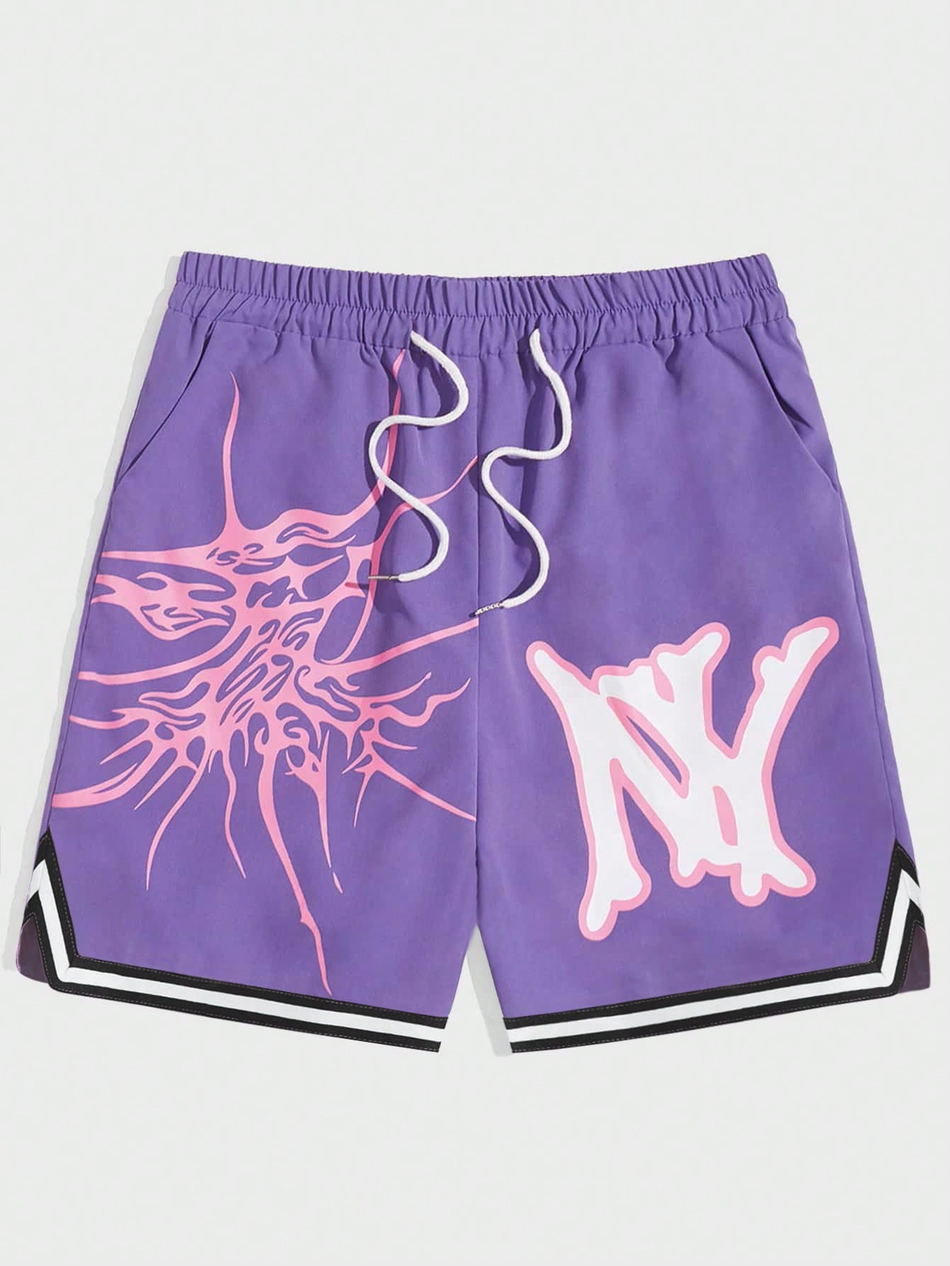 Prep Ragazzi Shorts con grafica lettera bordo a contrasto con coulisse a vita