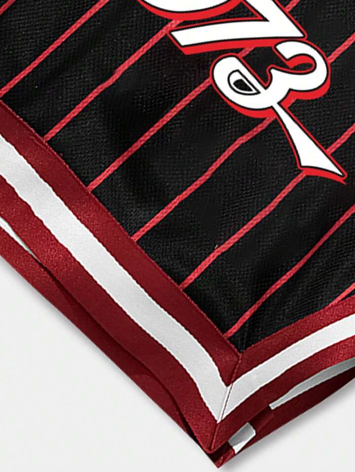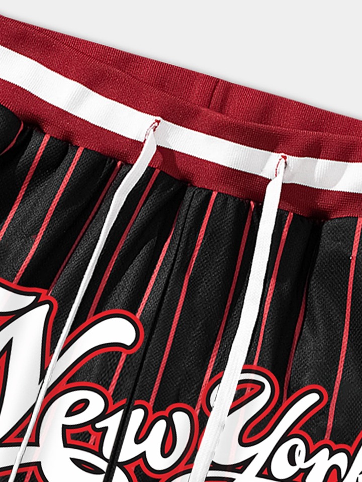 Prep Pantaloncini a rete larghi alla moda da uomo con stampe a righe e lettere per l estate, scuola