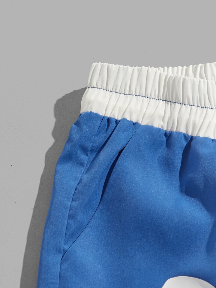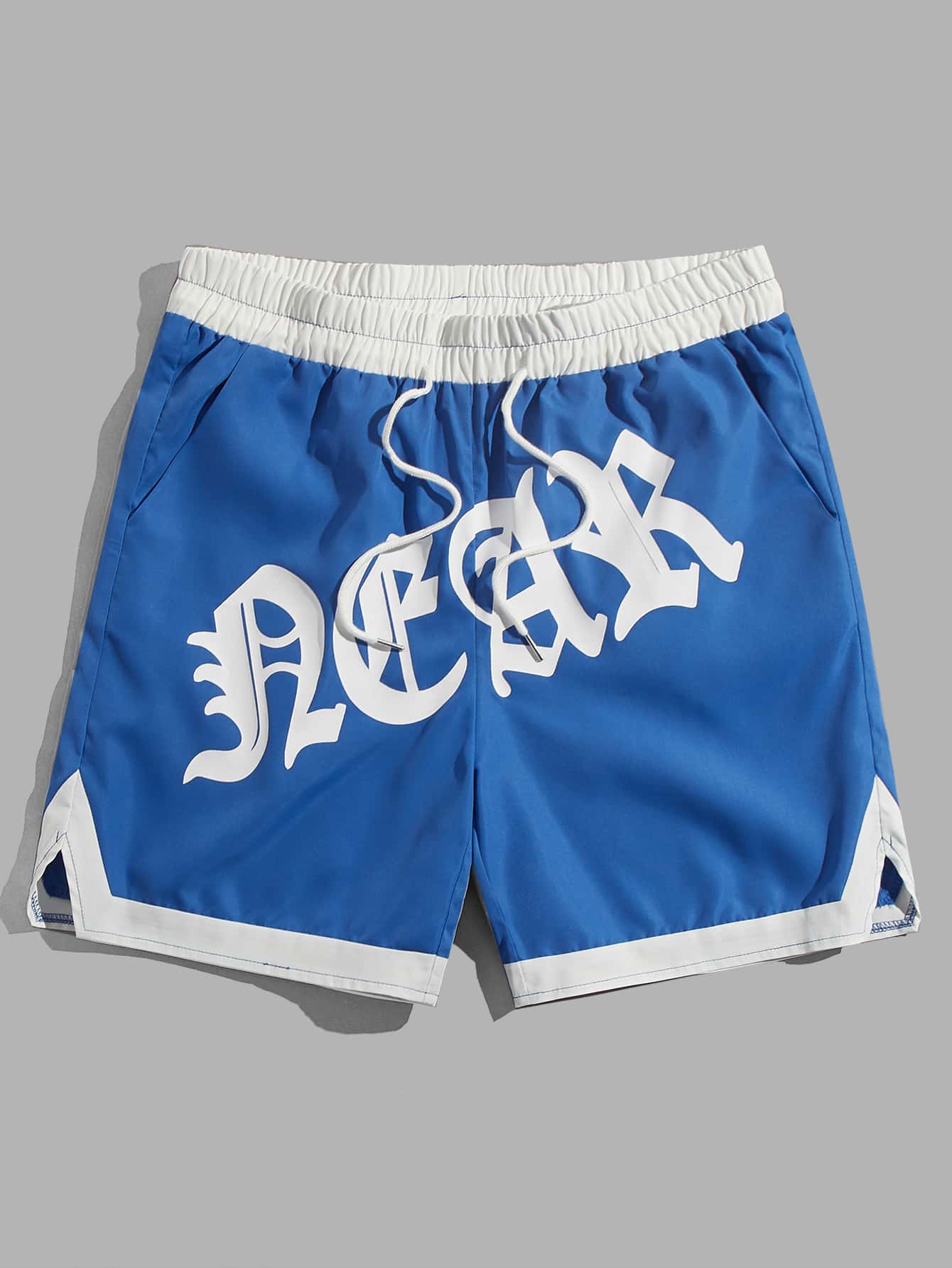 Prep Pantaloncini da uomo con grafica a lettere, vita con laccetto, rifiniture a contrasto, per la scuola