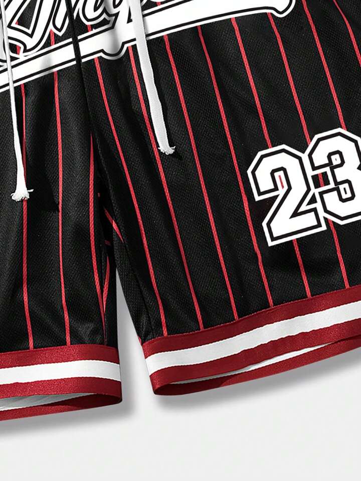 Prep Pantaloncini da uomo con vita con coulisse, a rete, con grafica a righe e lettering