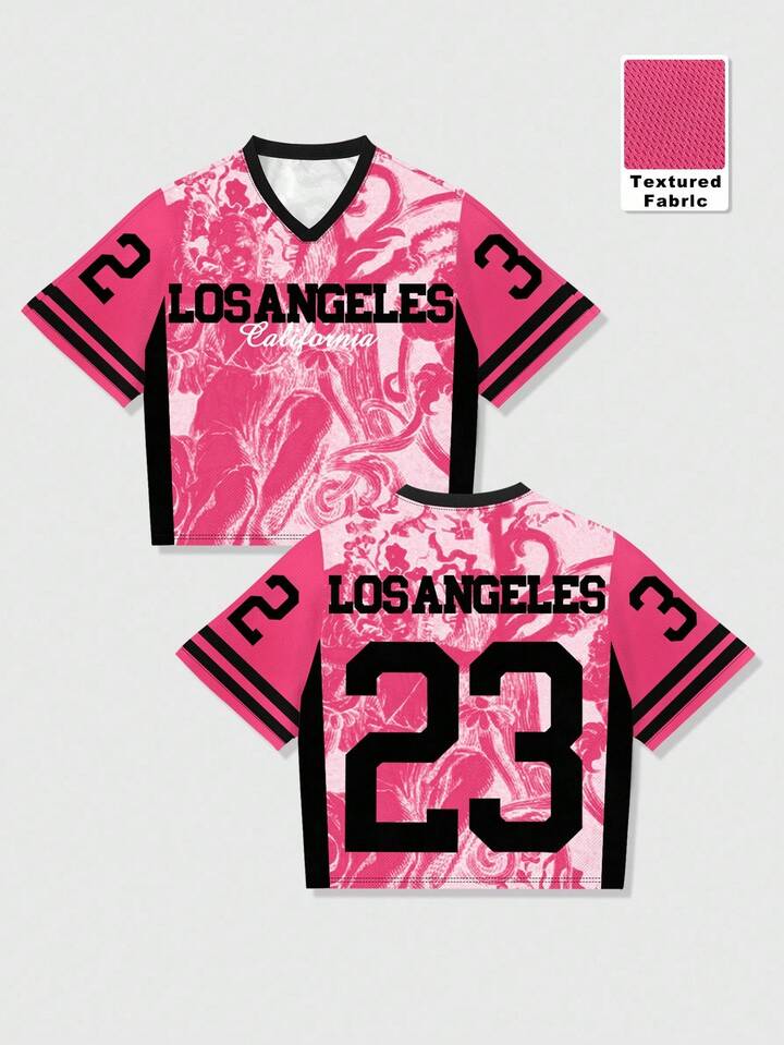 Prep Maglietta casual da uomo a scollo a V con stampa #23 e maniche corte