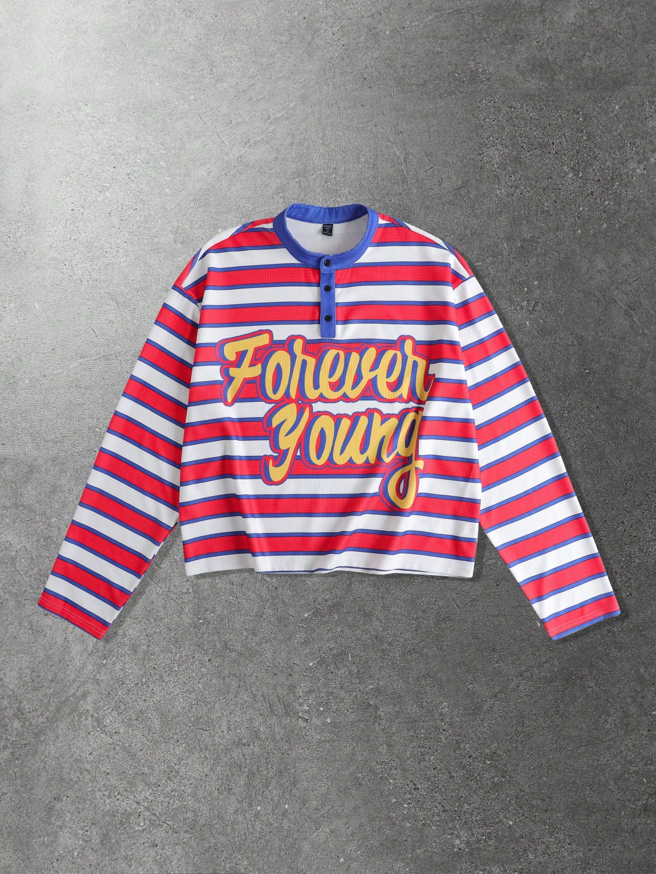 Prep Maglietta casual da uomo con stampa a righe a contrasto e lettera