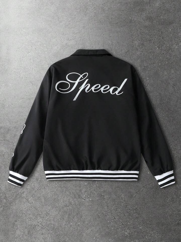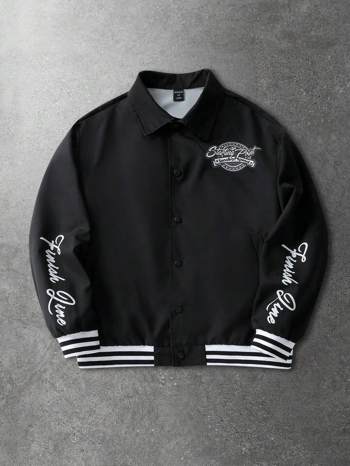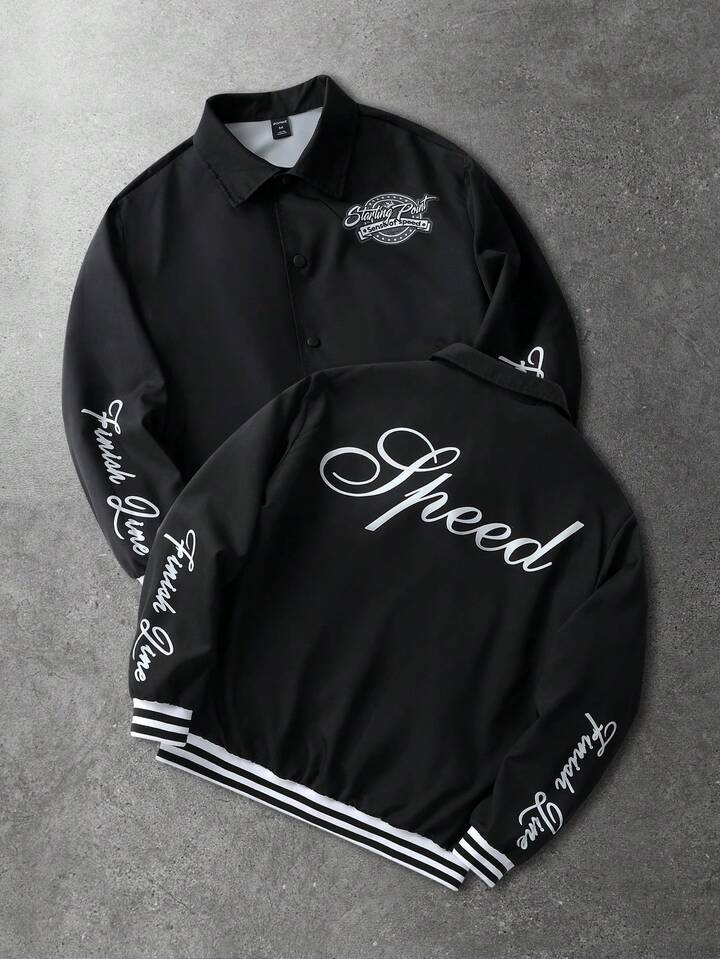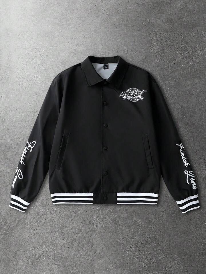 Prep Giacca casual da uomo con stampa a lettere, autunnale