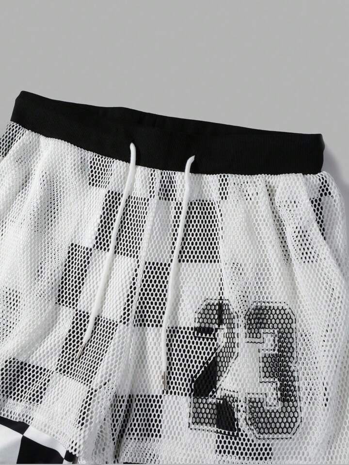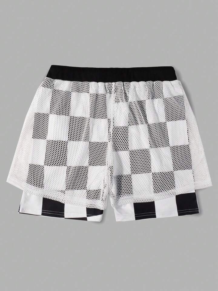 Prep Short Sportivo A Doppio Strato A Quadri E Stampa Numerica Per Uomo