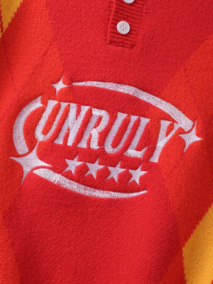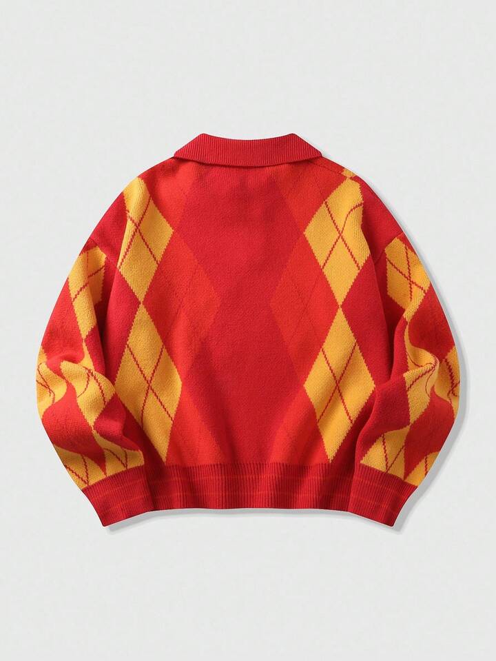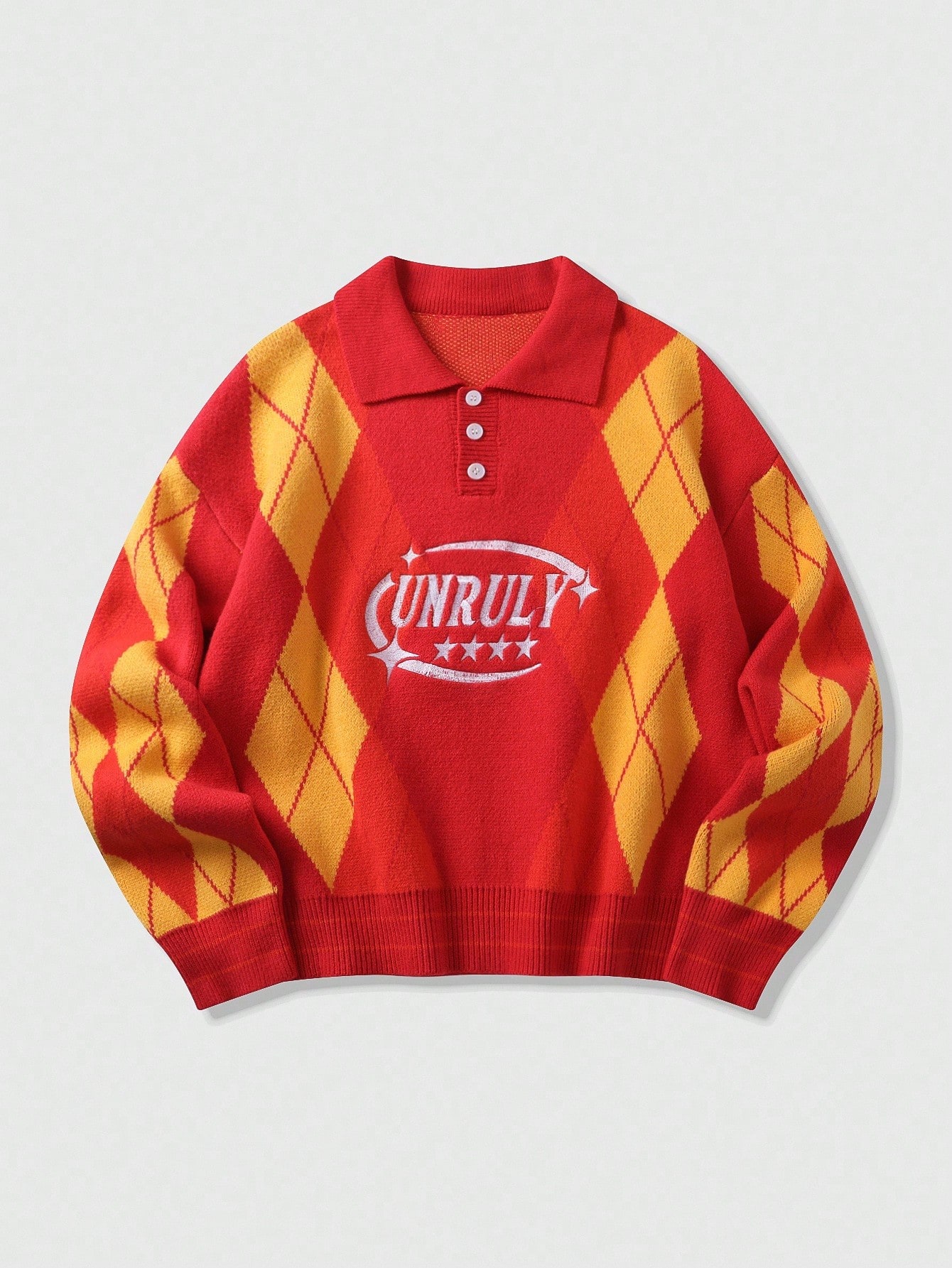 Prep Maglione da uomo in maglia jacquard con motivo ricamato, vestibilità ampia e corta, autunno inverno