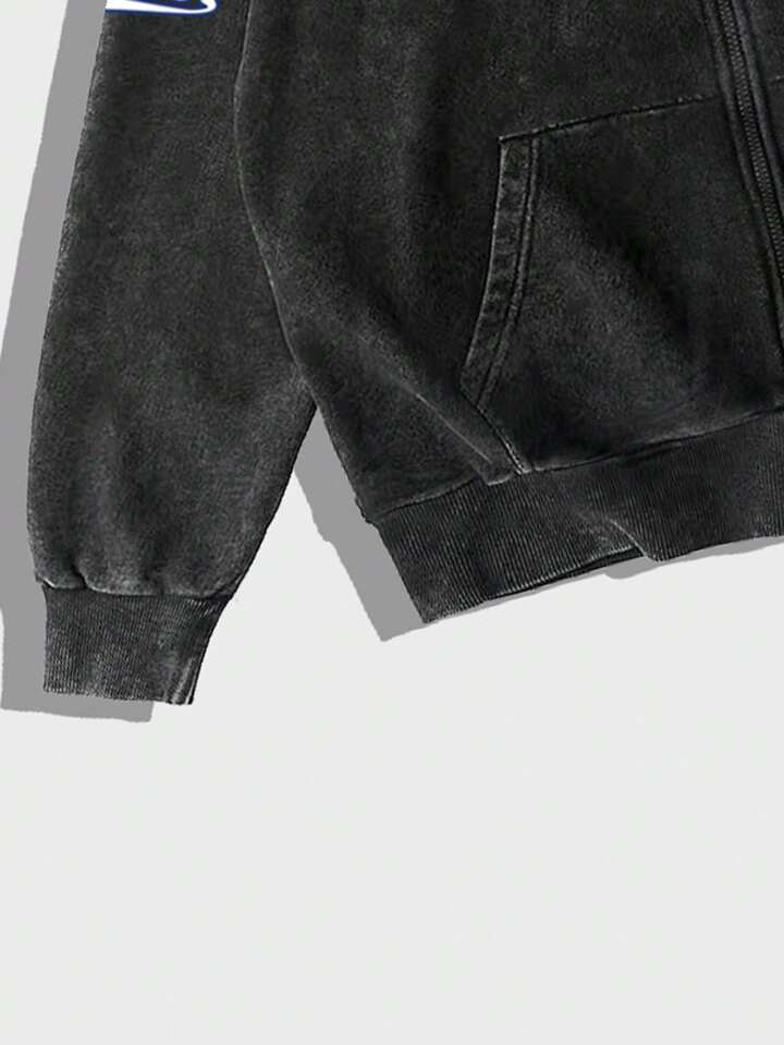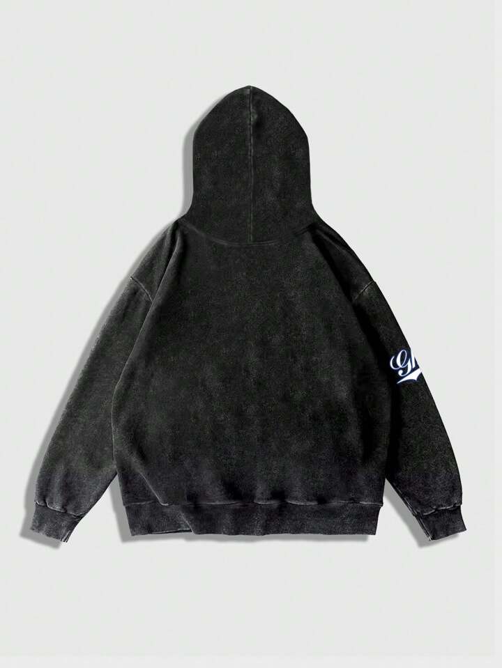 Prep Felpa con cappuccio a maniche lunghe con chiusura lampo davanti e stampa di lettere semplice, per uomo