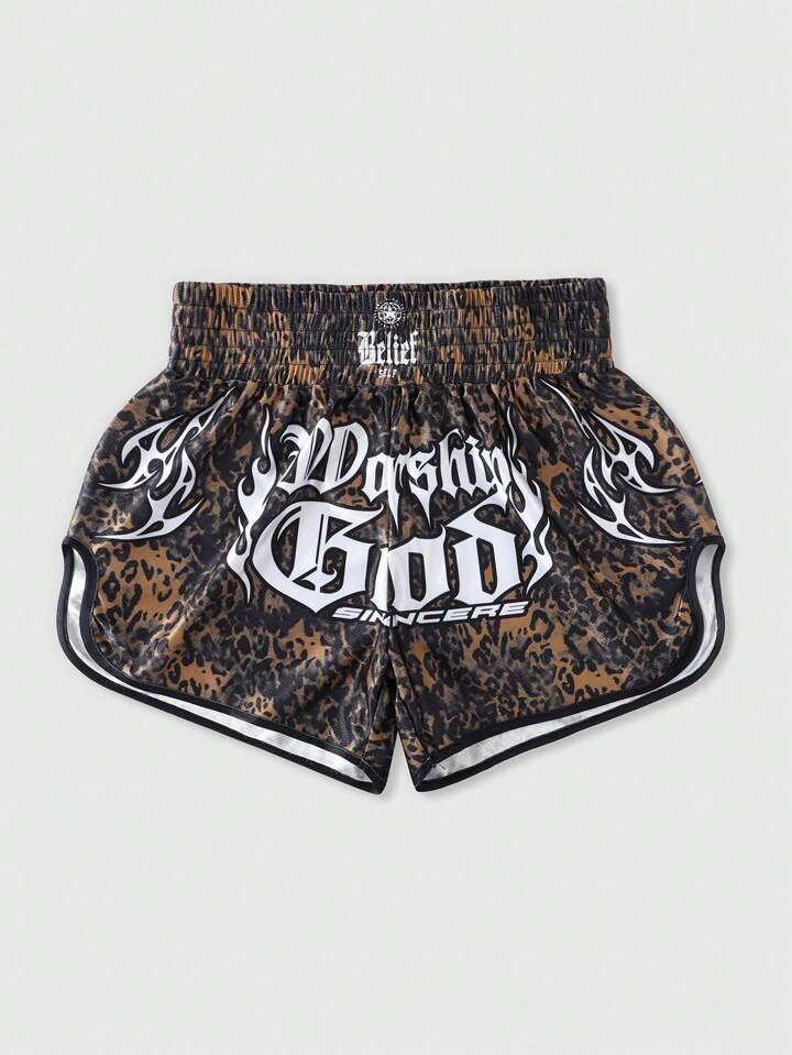 Prep Pantaloncini sportivi/da boxe/da basket da uomo con stampa leopardata, adatti per l'estate