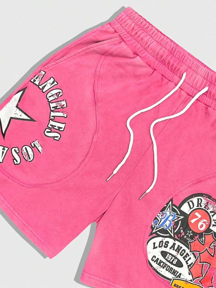 Prep Pantaloncini casual da uomo con stampa a croce e lettera, vita con coulisse