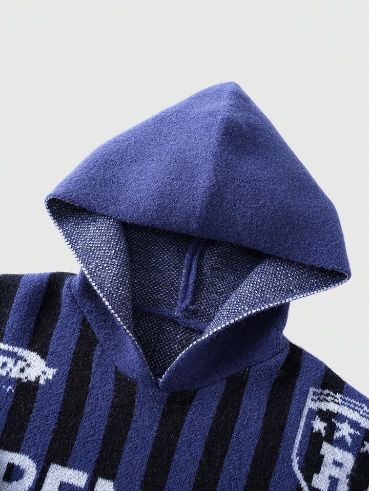 Prep Felpa con cappuccio casual a maniche lunghe con motivo a righe e lettera, autunno/inverno, da uomo