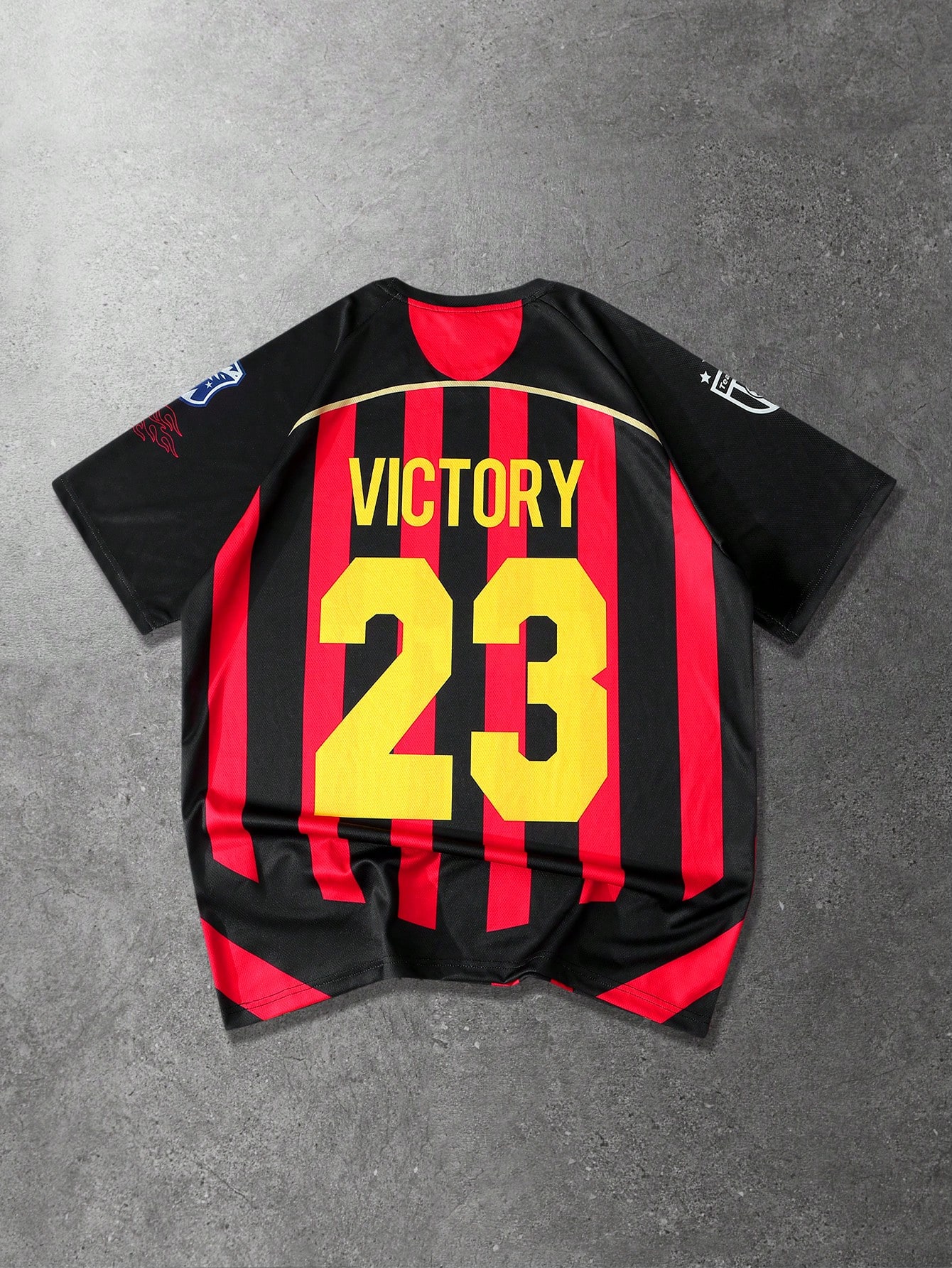 Prep T-shirt casual a maniche corte da uomo con stampa di lettere e righe, scollo rotondo