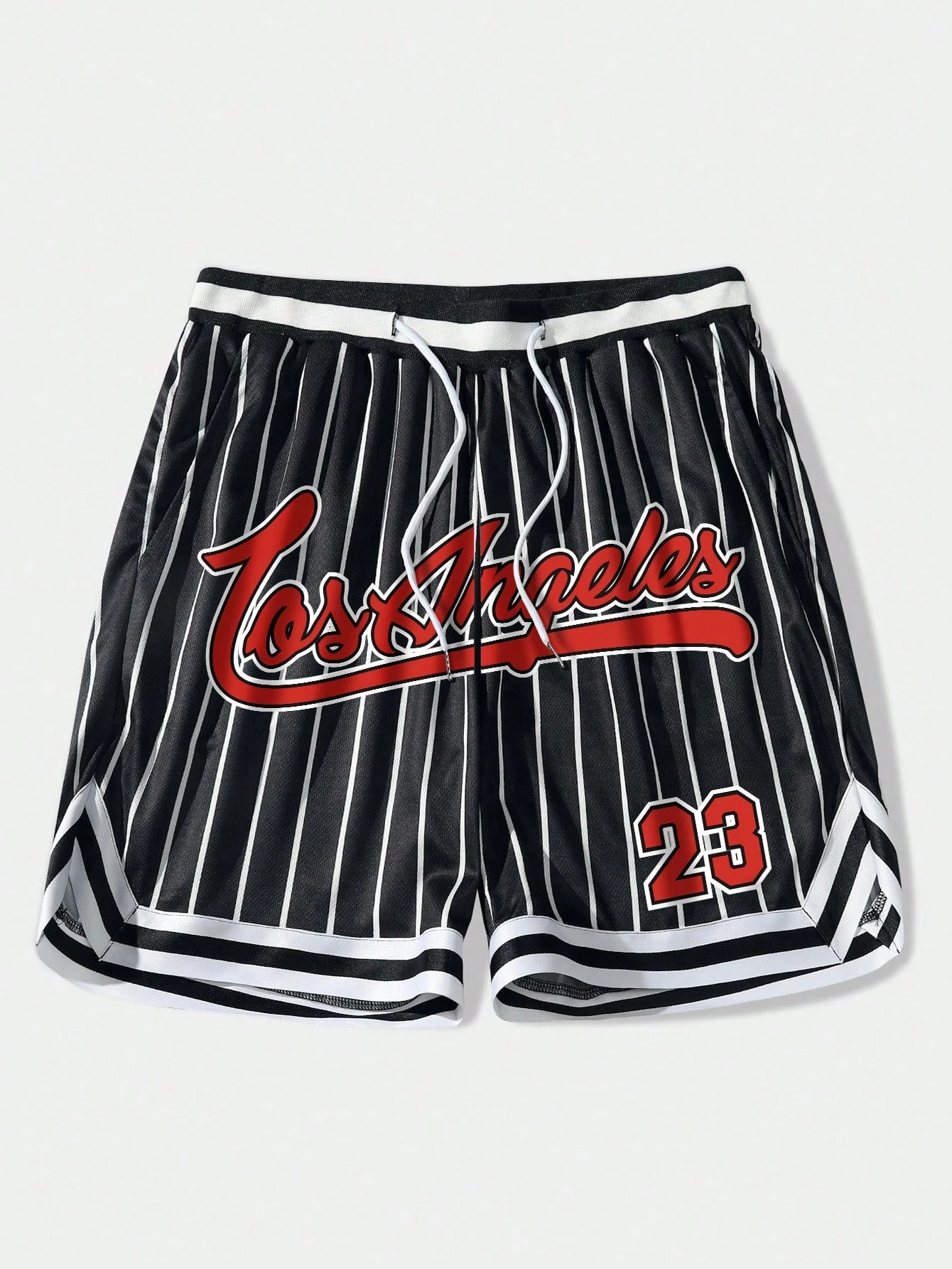 Prep Pantaloncini casual larghi da uomo con coulisse in vita e tasche, con motivo a righe e lettera