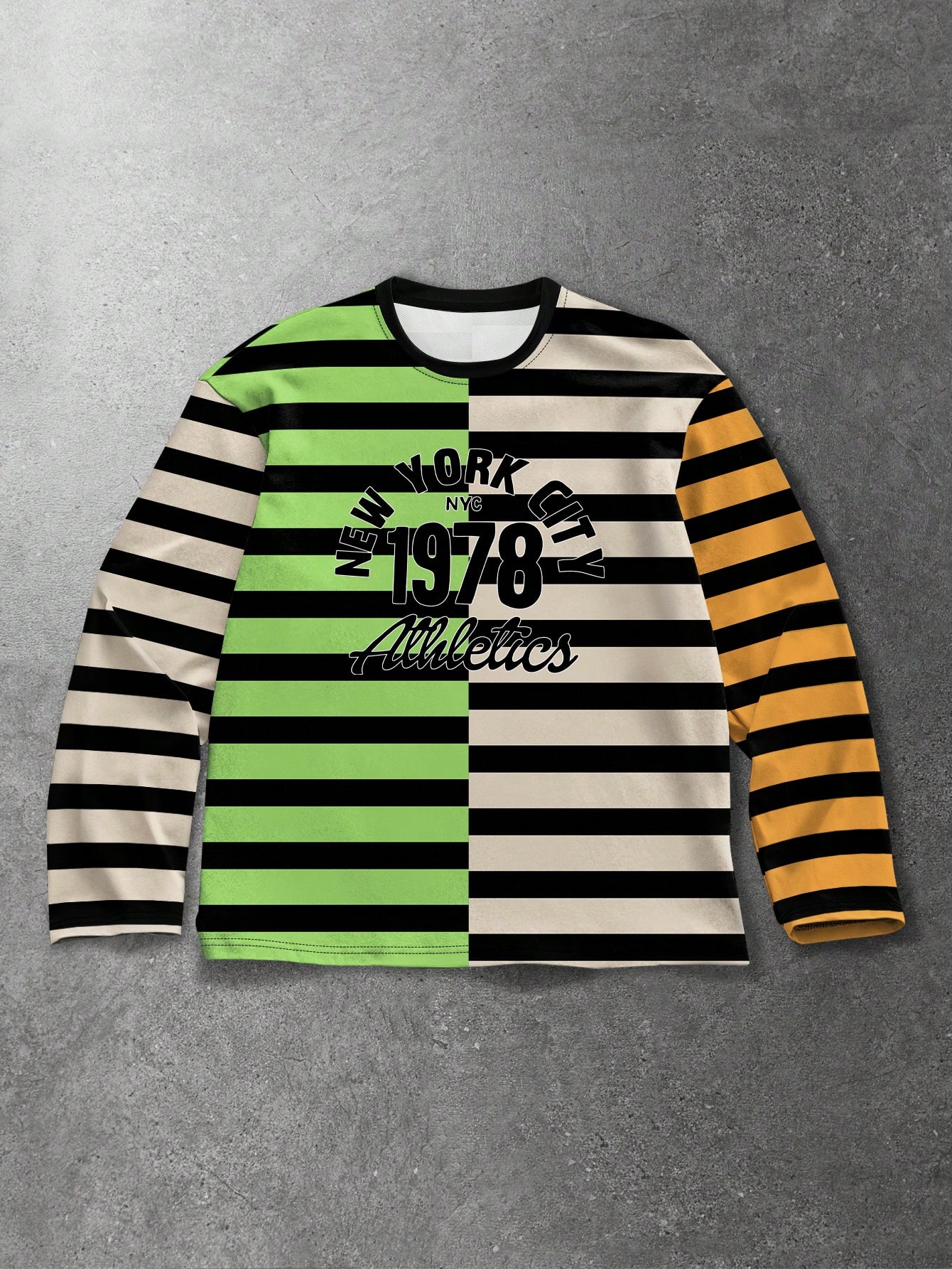 Prep Maglietta casual da uomo a girocollo, manica lunga, con stampa di lettere e righe