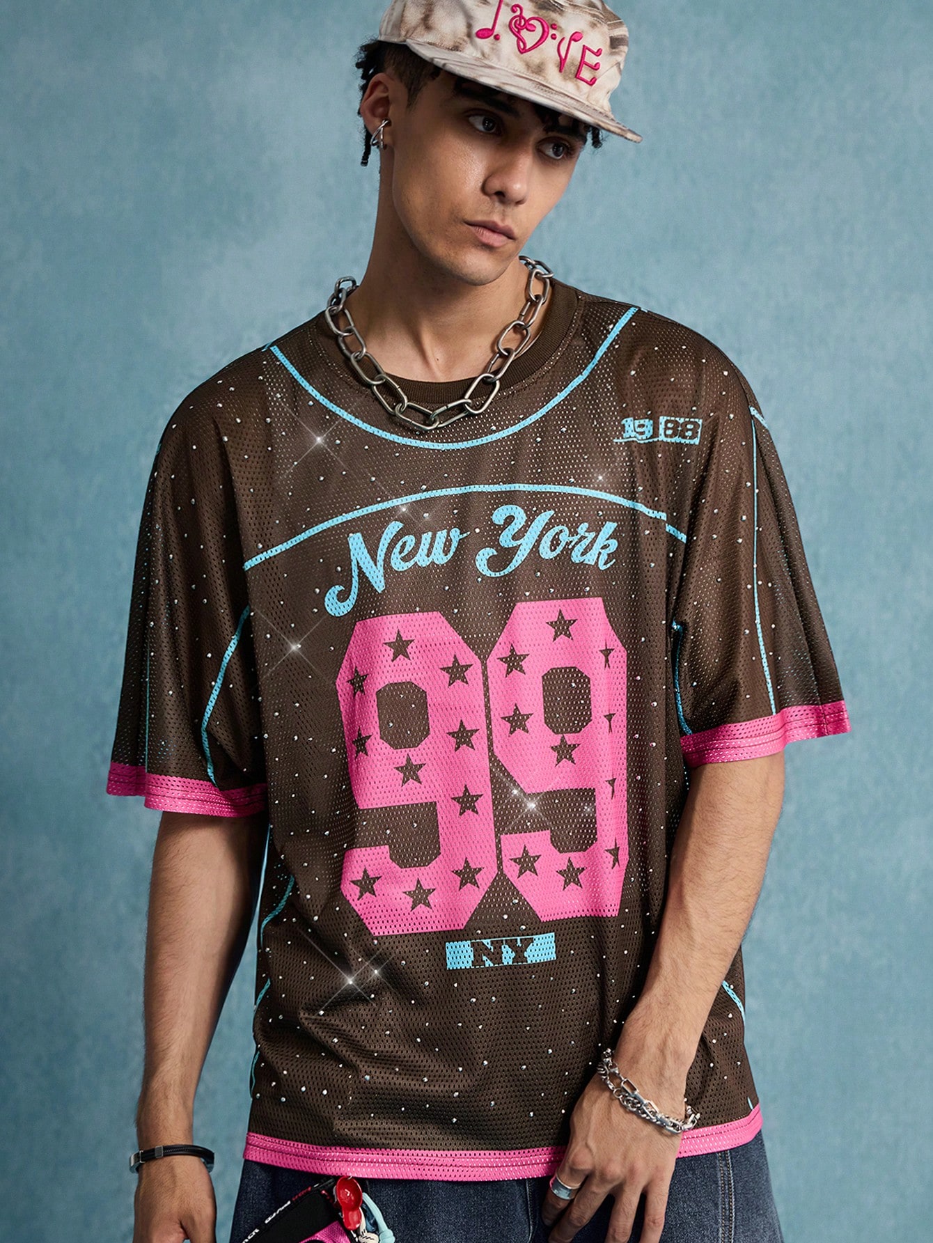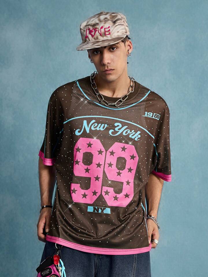 Prep Maglietta sportiva da uomo con rete e decorazione di diamanti scintillanti